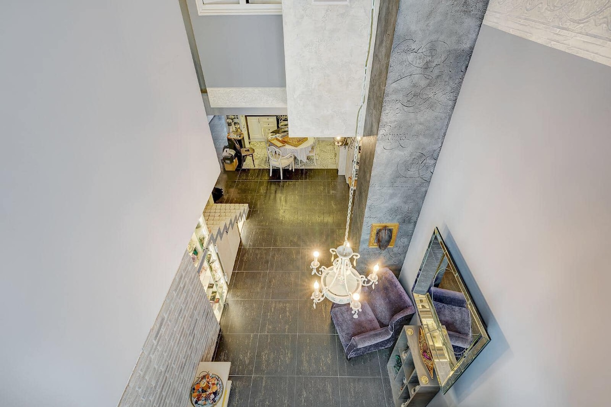 Kviečiame į modernų miesto loftą su aukštomis lubomis ir galerijos atmosfera. Interjerą formuoja švarios linijos, metalo detalės ir meniški akcentai, sukuriantys subtilų Niujorko kūrybinių rajonų pojūtį. Svetainėje esantis elektrinis židinys leidžia keisti apšvietimo toną ir nuotaiką: nuo jaukios vakaro ramybės iki miesto nakties švytėjimo. Antresolėje įrengta miegamoji zona suteikia privatumo, o vonios dizaino detalės subtiliai primena miesto panoramų estetiką.