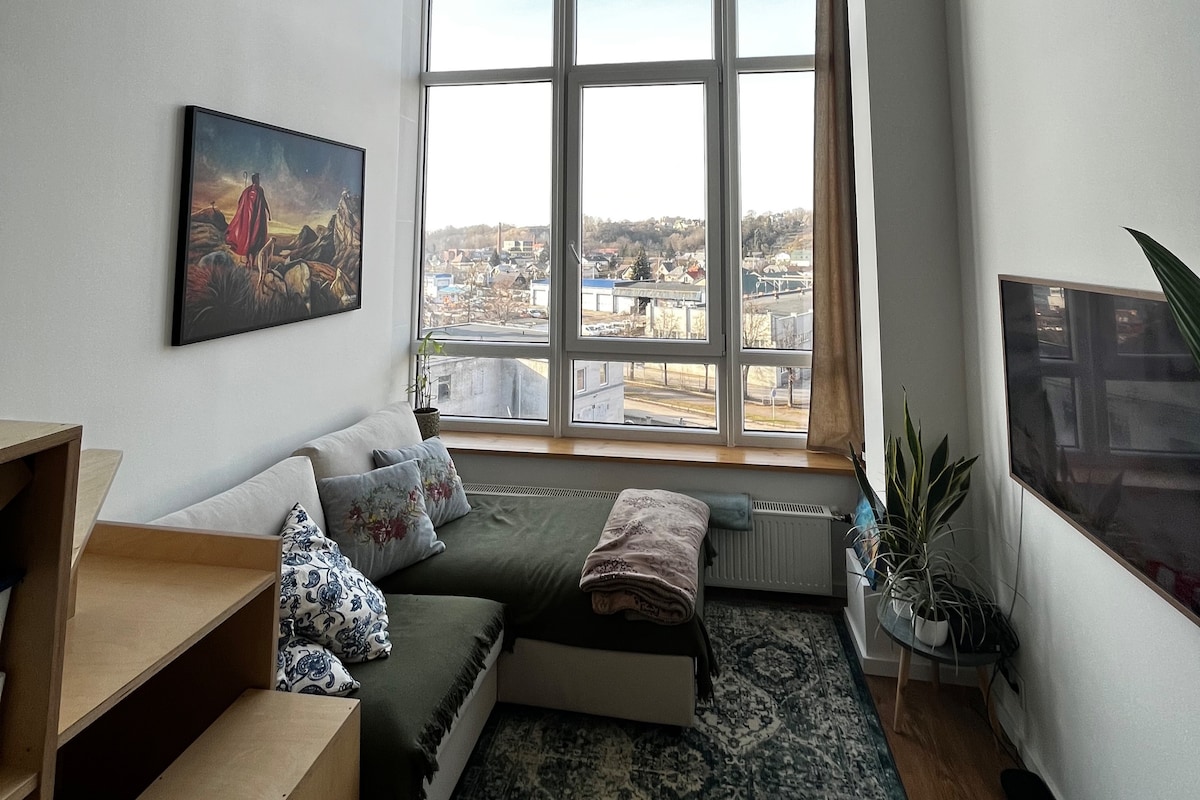 Nicely decorated, amazing, cozy and stylish 2 level designer Mini Loft / Studio in the center of Lithuanian capital Vilnius. Entire place fits 3 adults. Full kitchen, bathroom, washer & dryer. This modern elevator building is conveniently located within the walking distance to popular old town and other amazing places Vilnius has. Only 7 minute taxi cab / Uber ride (5-6 Eur.) from the airport / train or bus station. Parking is available near the building. Grocery store IKI is steps away.