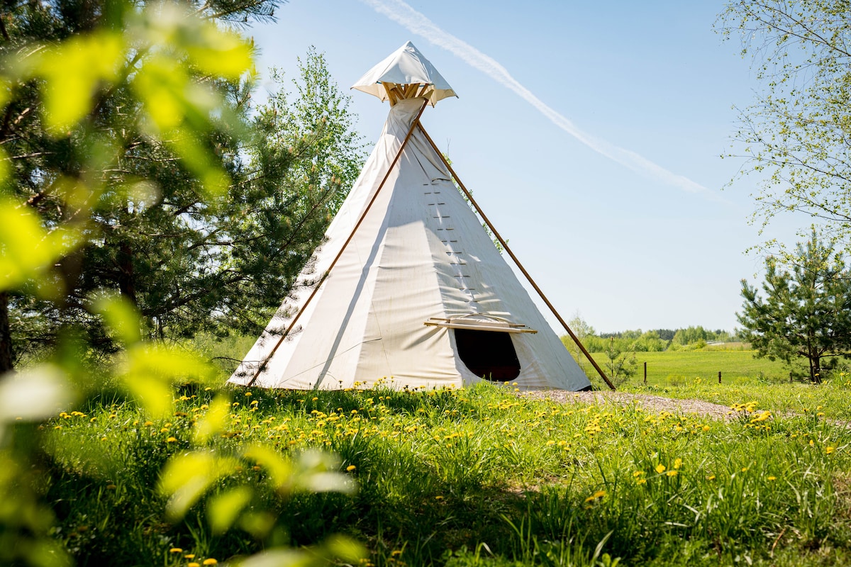 Glamping Club Buceliskes is excited to offer you two bell tents in the forest area. One of them 4-meter where we can comfortably accommodate two persons in each other. The second one is big family tent, where stay double bed for parents and 1-3 bed for children. Inside the tent you will find beds, mattresses, blankets, pillows and linen, bedside cabinets, chests of drawers, table, chairs, cups, plates, cutlery, drinking water.