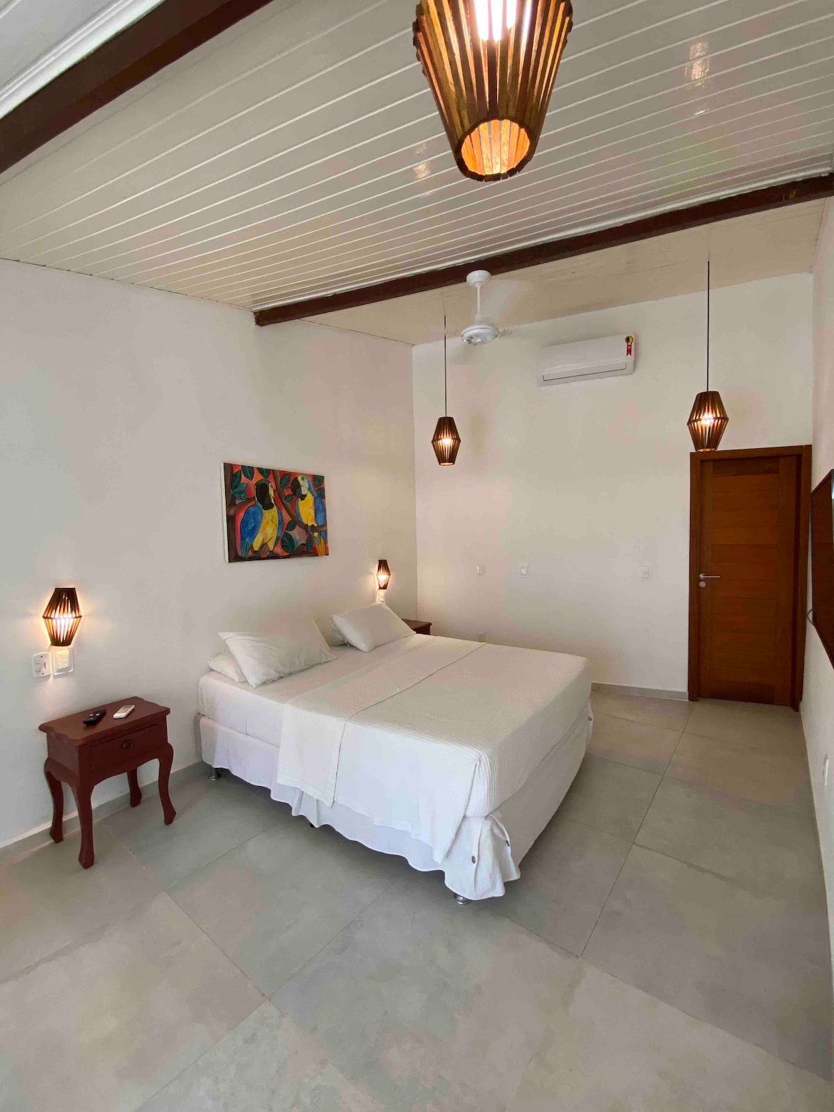 Hotel with 9 separate suites. Barbecue area and huge roof terrace on the 3rd floor (100 m²) for relaxing or working right in the center of Pipa. This room is located on the 1st floor. About 300 meters to the famous “Praia do Amor” beach. Shops, restaurants and bars are just a few meters away. Perfect location. The house and rooms have been completely renovated. Ideal for 2 people