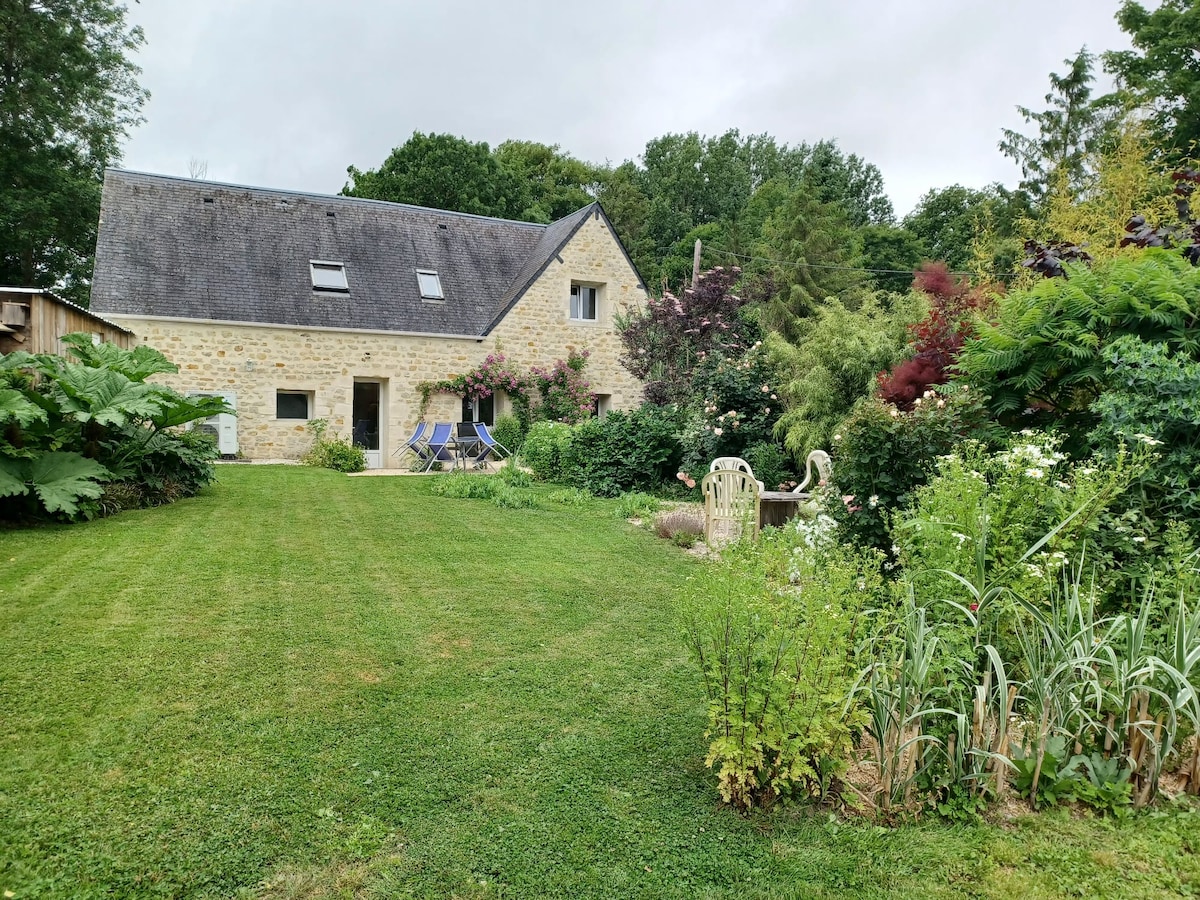 En plein bocage Normand, dans un paisible écrin de verdure vous vous laisserez séduire par le charme de ce gîte atypique de pur style Shabby, construit tout en bois, situé à 10 minutes de tous commerces, Villers bocage charmante petite ville, et accès autoroute A84. A 30 minutes de Bayeux et des plages du Débarquement, du viaduc de la Souleuvre pour le saut à l'élastique et la Suisse normande avec Clécy, Canoë et escalade. A une heure du Mont-Saint-Michel et de Deauville, des incontournables.