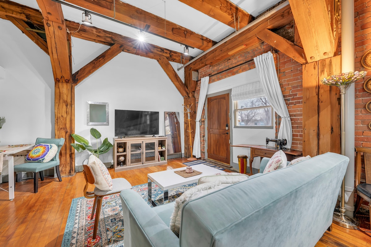 This loft is available for longer stays/ monthly rental. Private sunny deck entrance. Parking on site. Bell’s fastest fibe internet. Perfect home/ artist, office space Beautifully restored 1902 Grande Queen Ann loft with all new amenities. Windows and skylights look over the Detroit River. Enjoy 800 sqft balloon framed open studio style space with private laundry. River walk trail outside your door. In the heart of popular Olde Walk