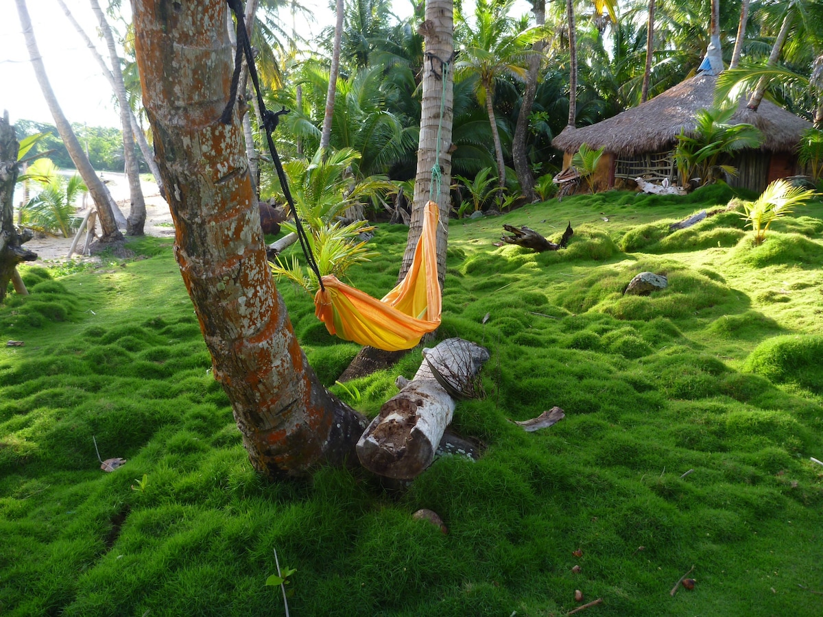 Coconut castle looks on deserted beach . Private covered pergola provides outdoor living space. Fully equipped mini kitchen . Fresh herbs and fruits from our garden. Enjoy a hot shower with our structured water system . The loft bedroom with great overhead fan, air-conditioning or open screened windows for sea breeze. All you need is bring is your favorite fishing pole, swimsuit or dance dress. Best to book flights a week to 10 days in advance as they fill up quickly.