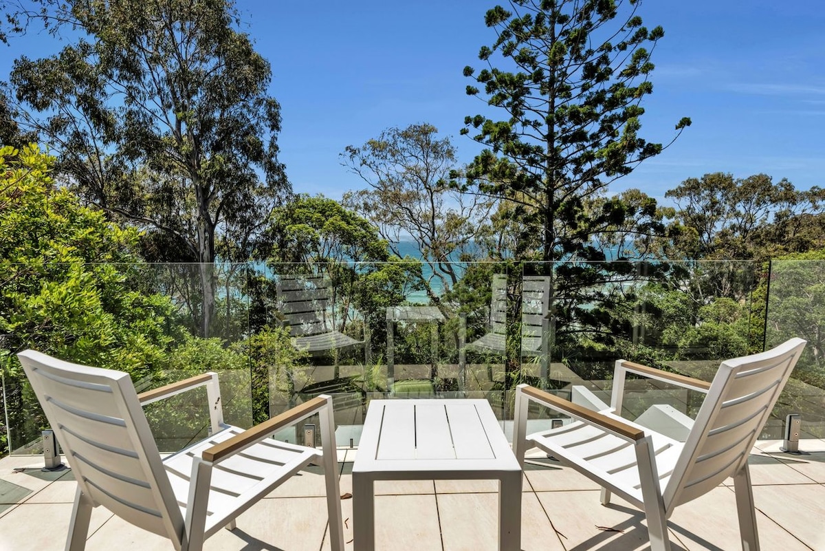 Romantic beachfront apartment with panoramic views over Coolum’s bays. Linger longer over ocean sunrises, soak in the bath as waves roll in, or enjoy coffee on your private balcony above the surf. Perfect for a few slow days by the sea, this modern open-plan retreat blends luxury and comfort in a peaceful coastal setting. Wander the scenic boardwalk, explore hidden beaches, and stroll to local cafés. Unwind on the sand at First and Second Bay, just steps from your door.