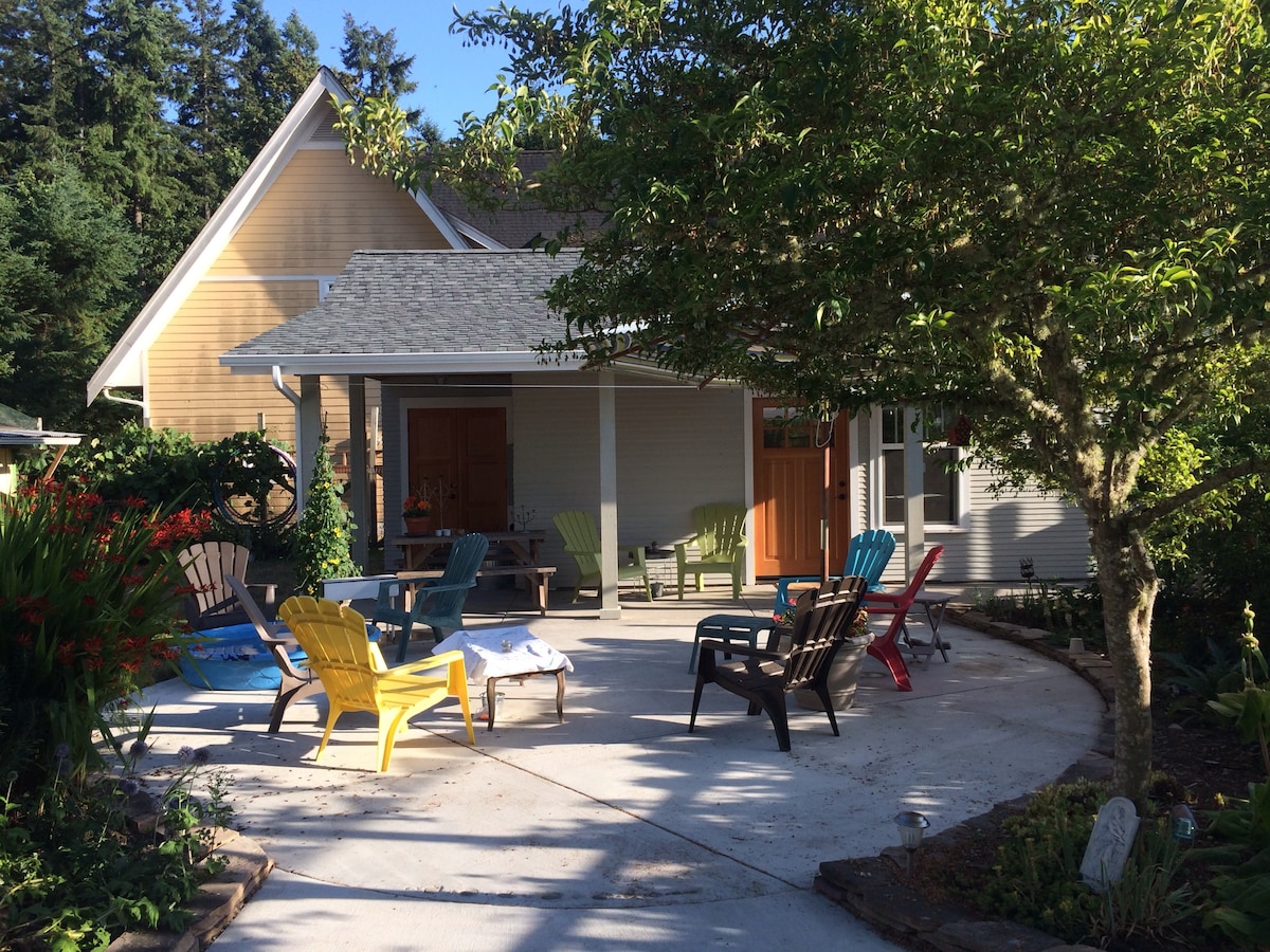 Retreat to the forest for healing, creative inspiration, or personal getaway. Located 15 min. from the Westside of Olympia on 10 acres of forest, on the shores of Oyster bay, this unique cottage will inspire you. Enjoy the water view, original art and thoughtful decor. Cozy up to the wood stove, create with art supplies provided, take a yoga class or book a massage in the geodesic dome next door. Enjoy the fire pit overlooking the water, or take a stroll in the woods. Rest & revitalize!