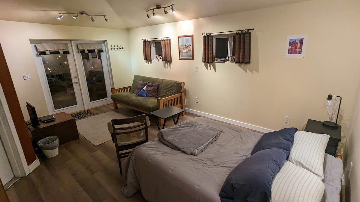 Take it easy at this unique and tranquil getaway. Private enclave in a quiet, park-like setting that feels like you are out in the forest but you are still close to the Capitol Campus, downtown, and West Olympia amenities. Daylight basement studio apartment with private entrance, off-street parking, and stocked kitchenette. Located within a short walk to westside food coop, one block from bus stop and nature trail to waterfront and downtown Olympia.