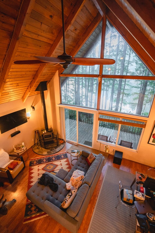 Enjoy the private lakefront and dock from this classic 1-bed + loft A-frame cabin! Recently remodeled kitchen and bath. Great for couples or small families who enjoy the outdoors! The bedroom features bunk beds (perfect for little ones) while the loft features a mid-century modern Queen bed for adults. Basic kayaks, inflatables, and life jackets are provided! Enjoy the peace & serenity of a quiet, non-motorized little lake in the woods in a classic, vintage A-Frame!