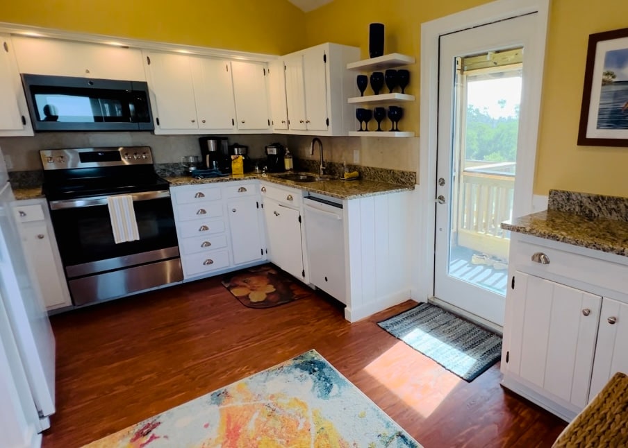 Welcome to Golden Girl. Our 3 bedroom 2 bath home is totally renovated with all new furniture. A 2nd level observation deck, private hot tub, bunkroom sleeps 6, two bdrms with kings, queen sleeper sofa in LR, laundry, high speed WIFI, all new appliances, smart TV's, so much more! Lanai opens up to semi private beach and a quiet neighborhood of single family homes. There is Bay access too. Kayaks available for rent. There is a separate apartment above not included. The location cannot be beat!