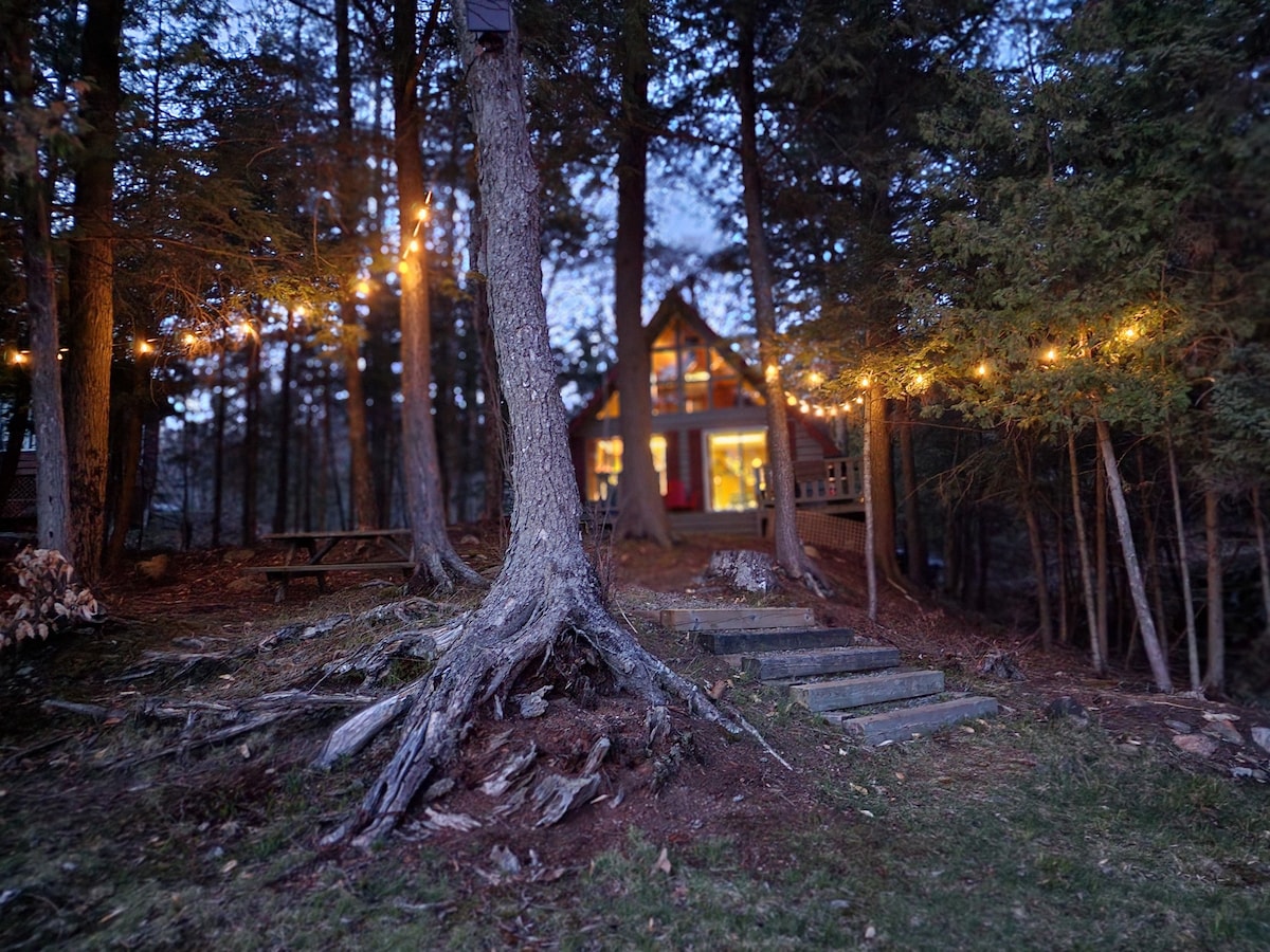 Embrace the quiet of the woods and the charm of an A-frame cabin. Turn off the outside world and enjoy the beauty every season has to offer in this cozy cabin. Spend your days exploring trails winding through 50 acres of private woodland and your nights cozied up around an outdoor fire. Close to local shops and restaurants in Haliburton Village (10 min drive). Ideal for a couple retreat or a family escape. STR-24-00027