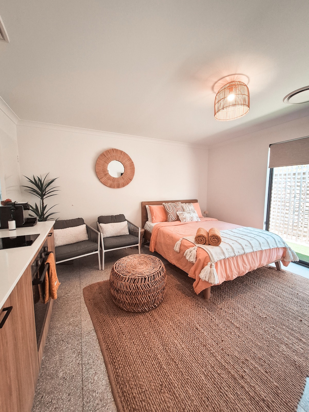 Discover our guest house just 3.5km from the heart of Dunsborough! With tranquil farmland views and a picturesque backdrop of bush and grazing cows, our location offers the perfect blend of peace and accessibility. The interior features a fresh coastal aesthetic that immediately evokes a relaxed vibe, ensuring you feel at home from the moment you arrive. Complete with a luxurious king-size bed and every essential amenity, your stay promises both comfort and convenience.