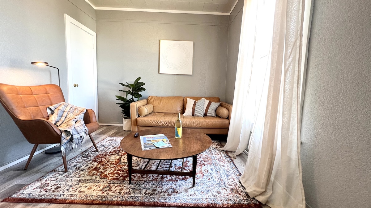 Escape to the serene 'Little River Cabin,' a retreat nestled on a private one-acre meadow along the picturesque Mendocino Coast. Wake up to sunlight streaming in the French doors and enjoy your morning coffee watching the deer. The cabin provides a quaint yet contemporary experience with all the comforts of home including a plush king size bed, a cozy fireplace and patio overlooking the forest.