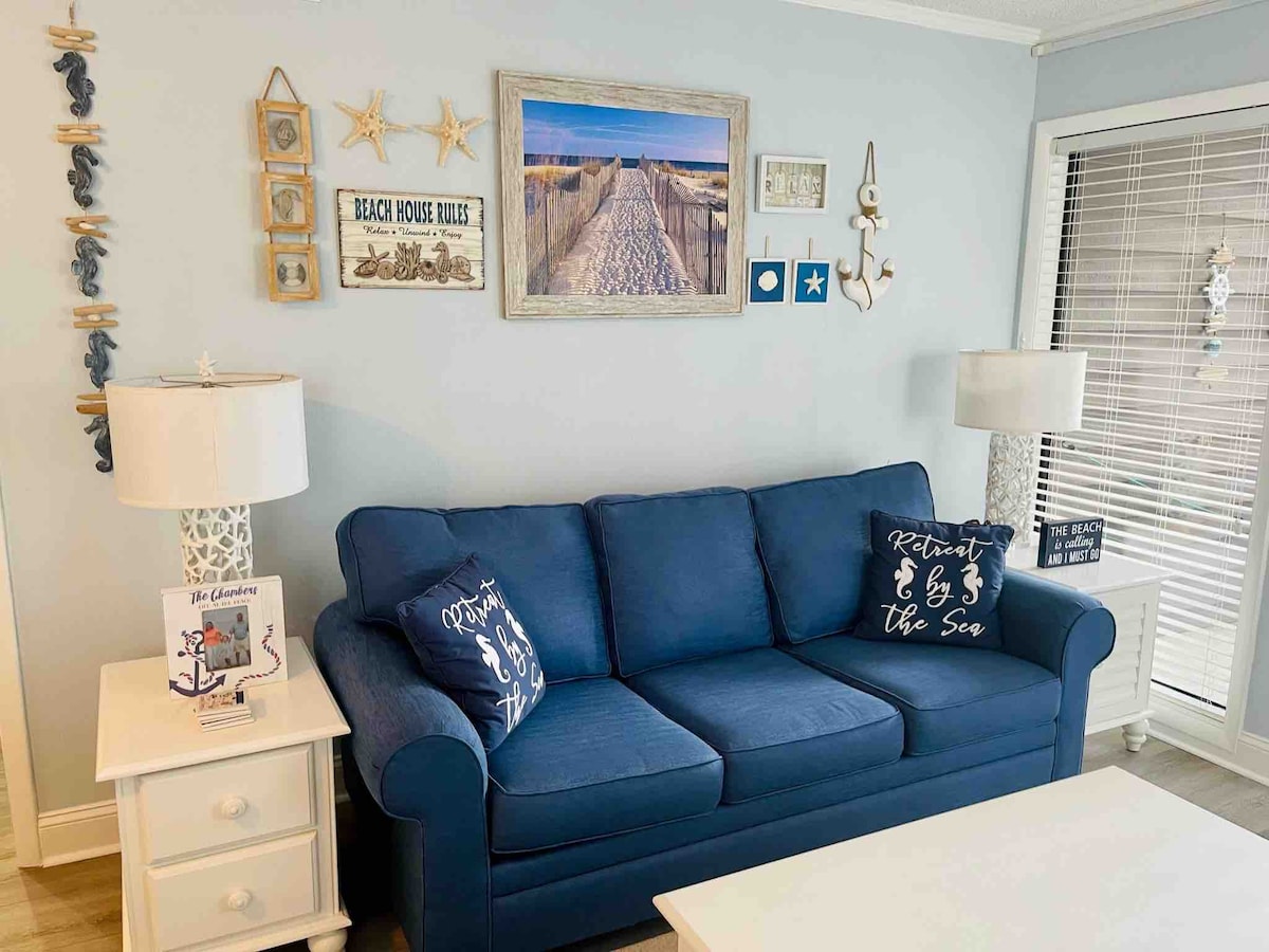 Dream Getaway in Little River, SC! This newly renovated, beach-themed condo offers the perfect blend of relaxation and adventure. Nestled on the border of North/South Carolina, it provides a serene and quiet retreat while being conveniently close to all the amenities you could desire. Enjoy the tranquility of our peaceful location, yet stay within easy reach of shops, restaurants, golf courses, beautiful beaches, the Intracoastal Waterway, and major attractions.