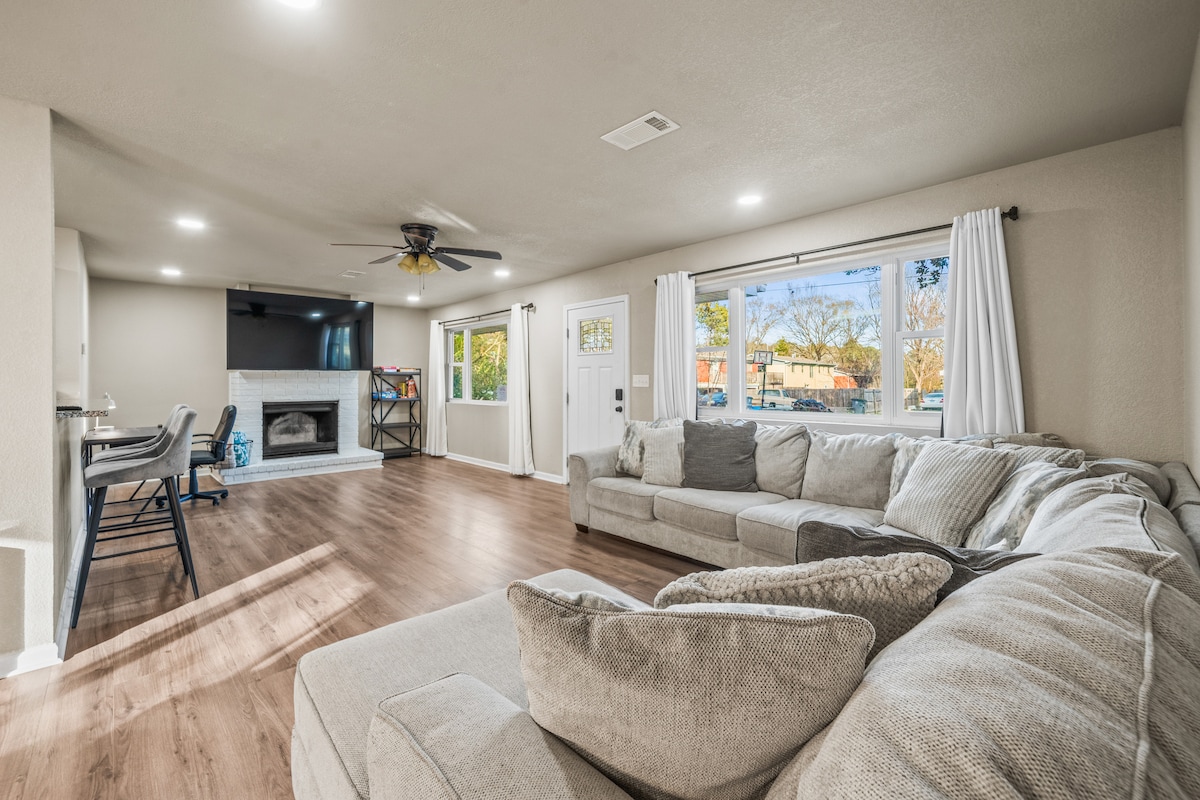 Kick back and relax in this stylish space with city views and a backyard country feel. This new construction has lots of little extras like the towel warmer and soaking tub in the Master bath. The amazing retro arcade area is so much fun! 4 bedrooms and 2 baths with a kitchen/living room that's spacious and open. Soak in the hot tub off the back porch or have a fire in the pit. Legacy Acres wedding venue is 4 miles away, popular restaurants, and all 3 colleges are so close.