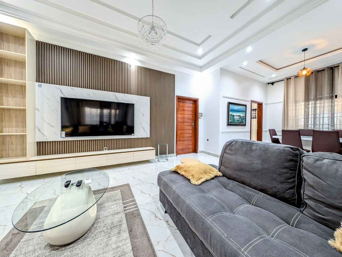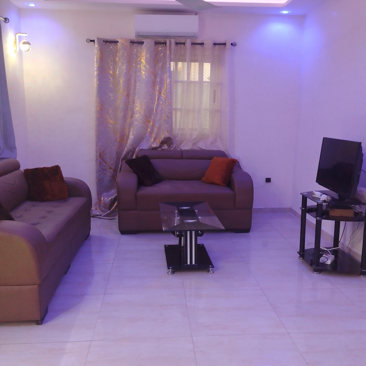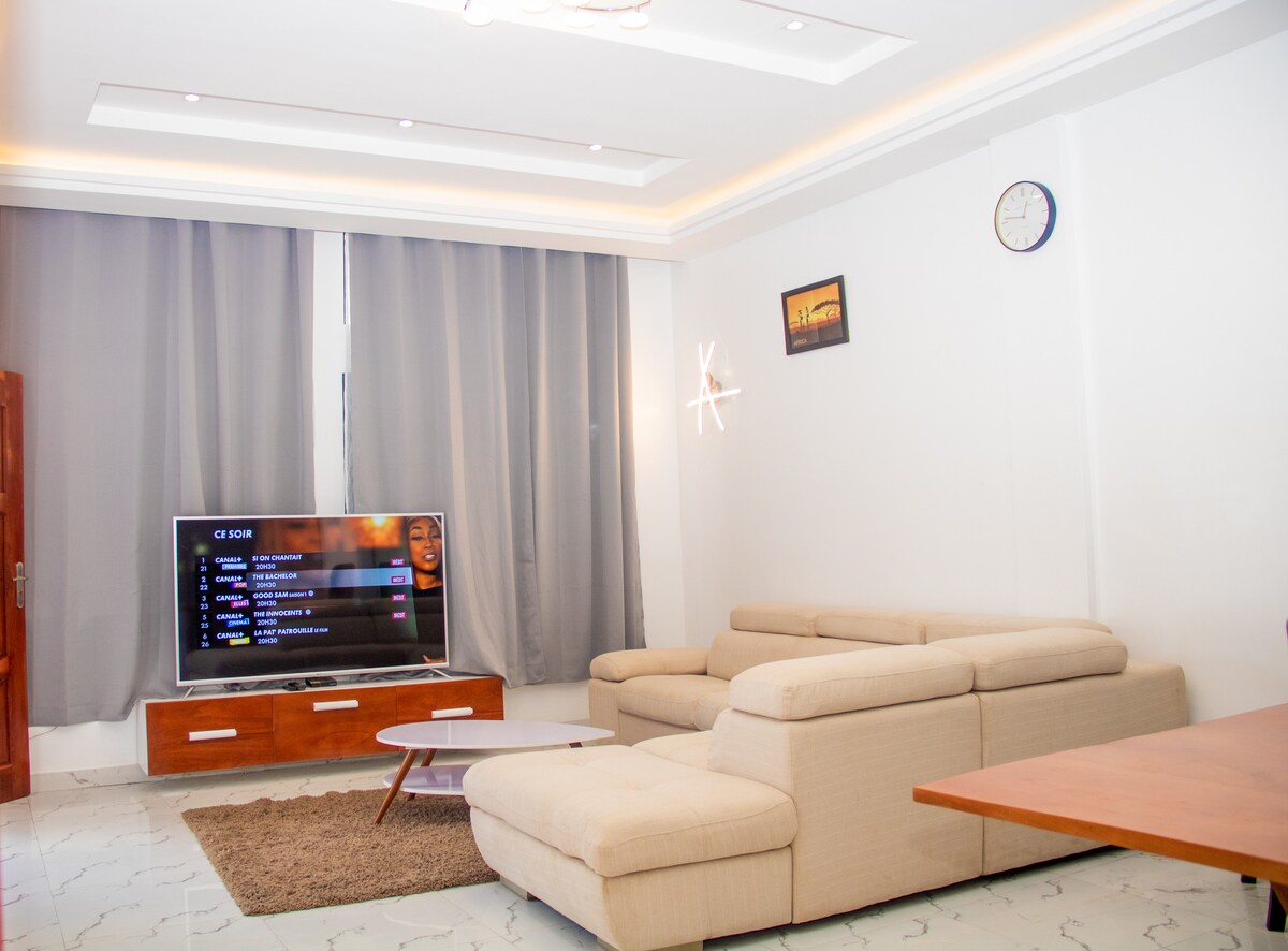Welcome to this modern and spacious studio apartment in Cotonou— your perfect home away from home in a quiet, safe neighborhood. Enjoy a fully equipped kitchen, a cozy living area with comfy sofas and a smart TV, a dining table, and a private bedroom and bathroom. The space is bright, clean, and thoughtfully designed for relaxation or work. This beautiful appartment is pnly a short drive from the airport, it's close to upscale restaurants in Haie vive and also near supermarkets and shops