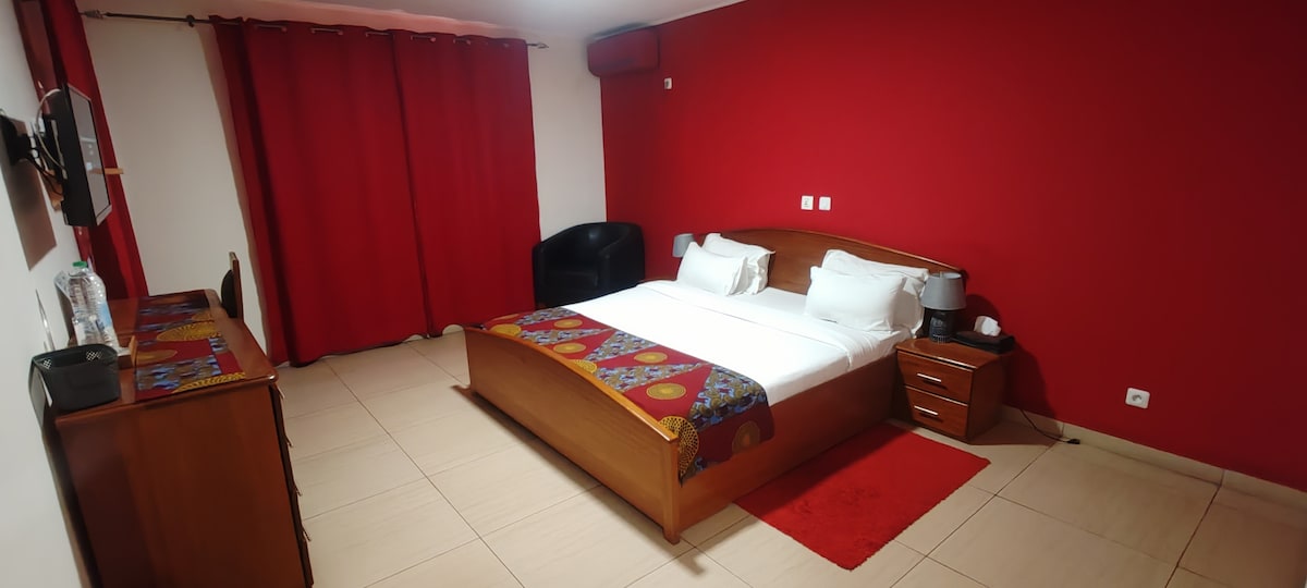 Profitez du luxe exceptionnel de ce logement unique. Nous disposons de 10 sublimes chambres dans un quartier résidentiel loin de toutes nuisances. Nos locaux sont conçus pour satisfaire les attentes de nos clients de divers cultures pour les courts, moyens et long séjours. Nous vous assurons un service client de qualité et une sécurité maximale. Nous disposons également d'un espace pour vos cérémonies de types mariage, anniversaires, cocktails entre amis ou afterwork entre collègues.