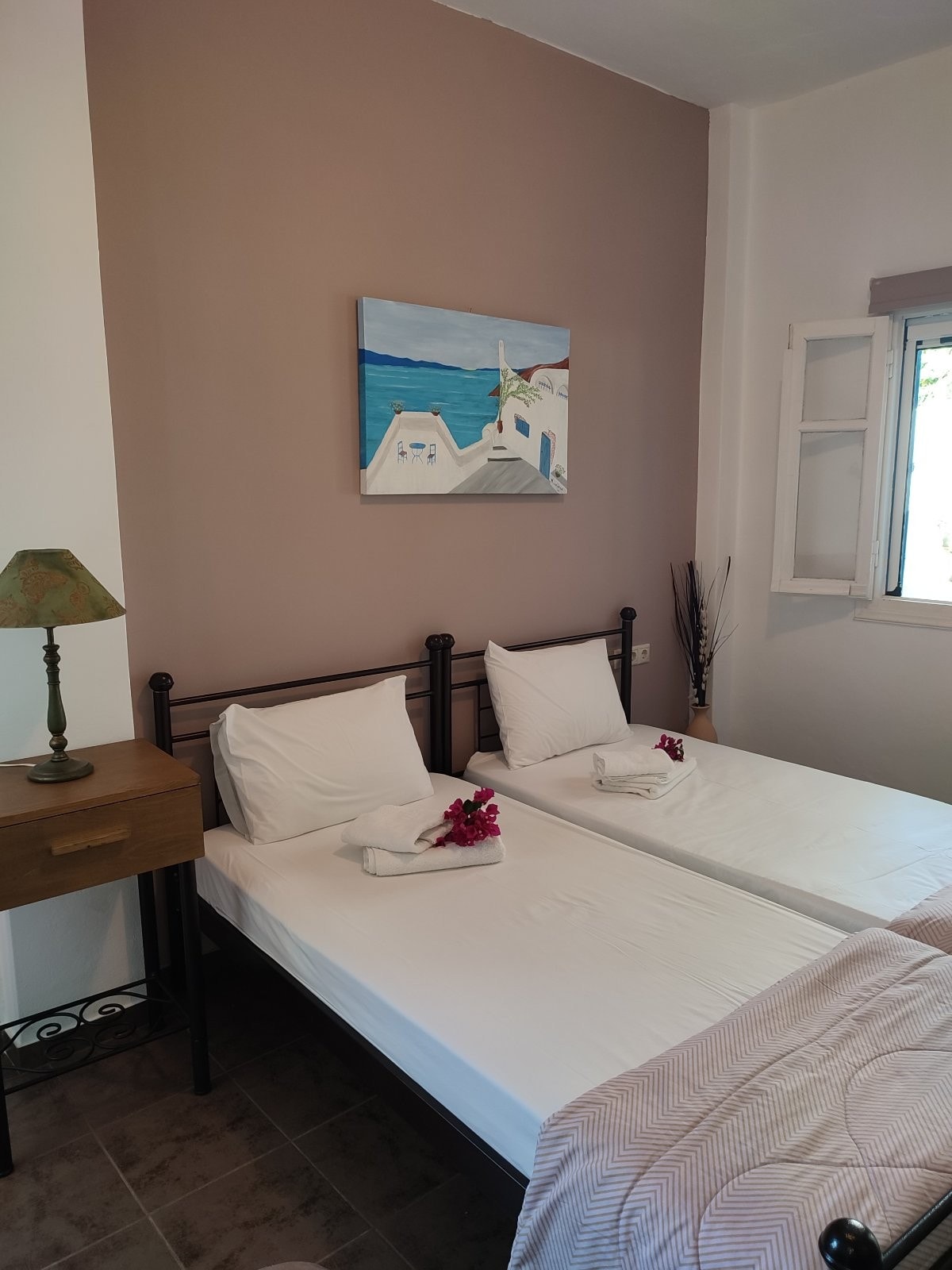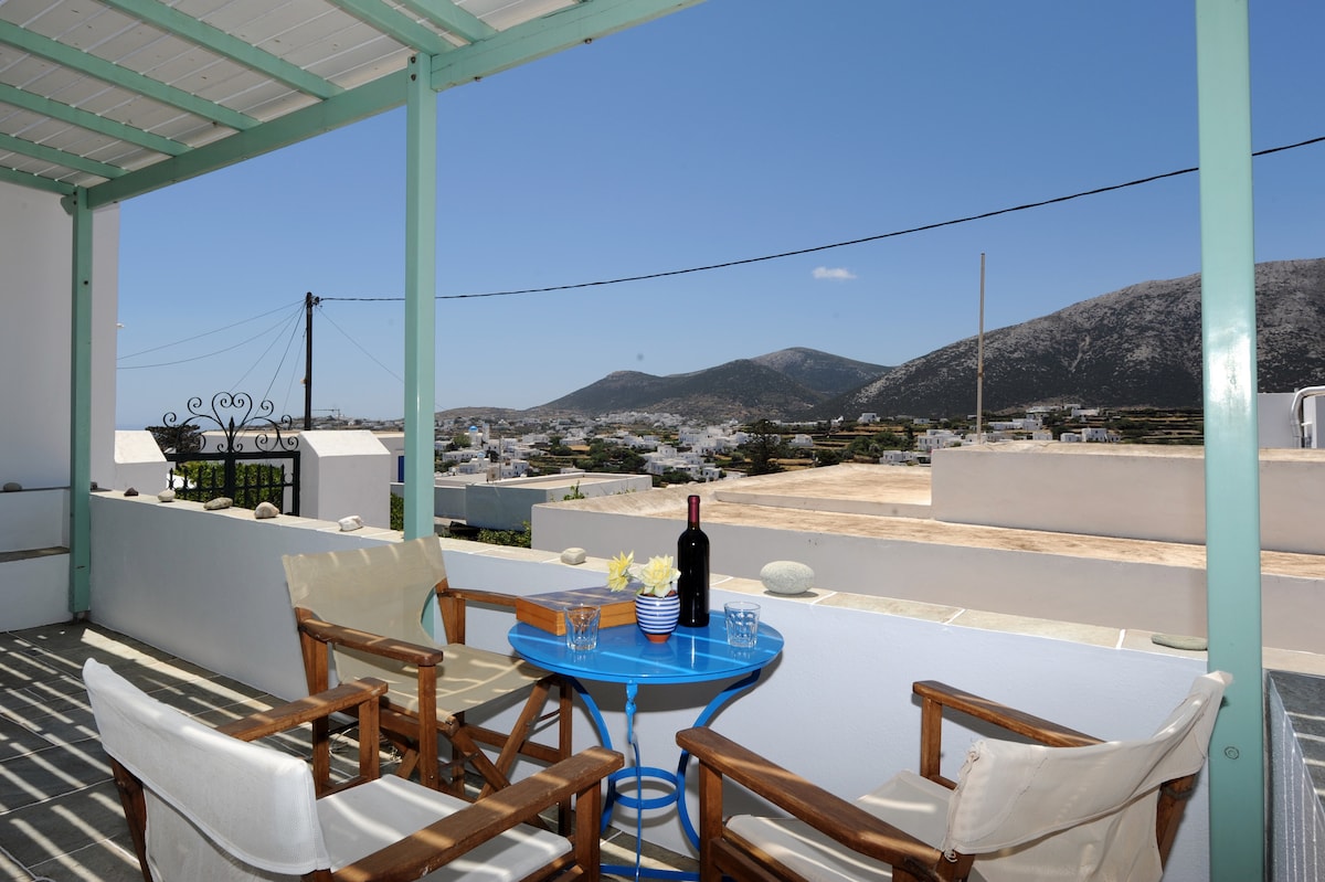 The apartments are in Kamares, located in the neighborhood of Agia Marina (or “Pera Panda” as the locals call it), overlooking the port and the sea, and is a three minutes’ walk away from the beach. Kamares is the port of the island, a very lively village during summer, with a nice long sandy beach , lots of restaurants, cafes and shops. During sundown take a walk along the beach to enjoy one of the most beautiful sunsets Cyclades have to offer.