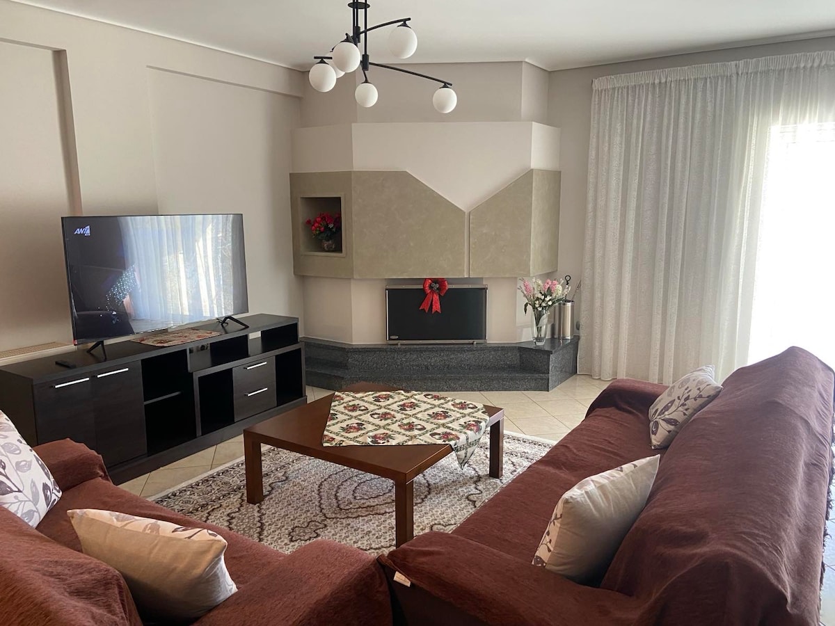Απολαύστε τη διαμονή σας στη Λιβαδειά σε ένα σύγχρονο, ανακαινισμένο και ευρύχωρο διαμέρισμα 120 τ.μ., σχεδιασμένο για να προσφέρει άνεση και ζεστασιά! Ιδανικό για οικογένειες ή παρέες φίλων, το διαμέρισμα συνδυάζει μοντέρνα αισθητική με πρακτική λειτουργικότητα. Βρίσκεται σε μια ήσυχη και ασφαλή γειτονιά, που σας εξασφαλίζει γαλήνια διαμονή, ενώ παράλληλα απέχει μόλις λίγα λεπτά από το κέντρο της Λιβαδειάς, εύκολα προσβάσιμο με τα πόδια