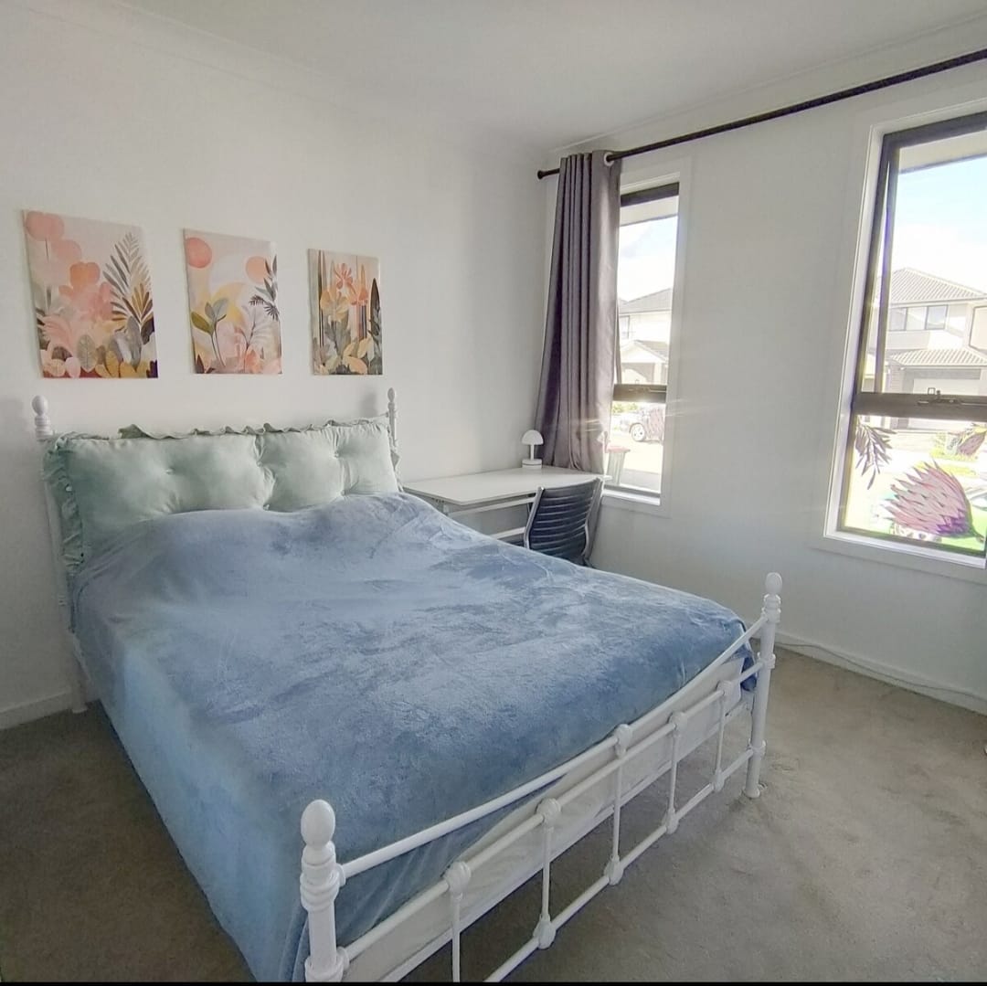- Near new house on a safe, quiet lane - 2min drive/10min walk to Leppington Village Mall (Woolworths, diners, etc.) & bus stop (one stop to train station) - 4min drive to Coles willowdale & diners etc - Self checkin via digital lock. - Bedroom is lockable with height adjustable desk, chair, lamp, block out curtains, fan, heater, electric throw blanket, quilt, extra pillows and comforter, indoor socks etc.. - Bathroom and toilet are separate just beside this bedroom