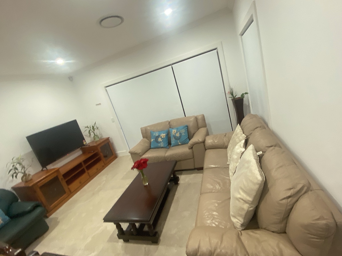 • 6 mins to Western Sydney Airport • 2 mins to shops, supermarkets & restaurants • 2 queen beds + 1 king bed with built-ins • Modern bathroom with washer & dryer • Fully equipped newly installed modern kitchen with appliances • Electric recliner leather sofa & 60" Smart TVce to stay is perfect for group trips • Laminated floorboards throughout • Pet friendly • Spacious backyard with BBQ area and outdoor furniture • Two Fast EV charging stations available upon request