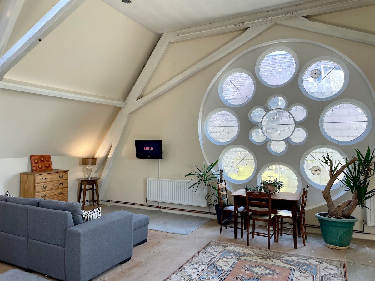 通风复式教堂公寓,免费停车,20分钟到市中心