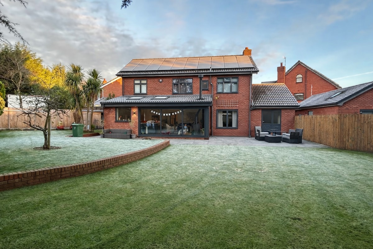 Tranquil suburban paradise with Wales as your back garden and Liverpool and Chester a short train away. 3 bedroom house with an open plan kitchen diner with a bifold to extend the inside outside on a warm day and a comfy lounge. Converted garage into cinema room 🎥 Free parking and is close by transport to cities such as Liverpool and Chester. Walk to Port Sunlight - 7 minutes Train to Liverpool - 15 mins Train to Chester - 26 mins Lots of local pubs and restaurants within walking distance.
