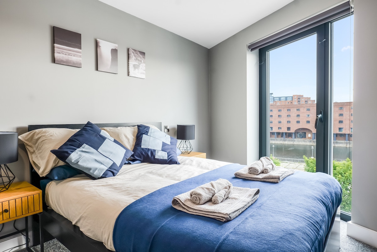 ENTIRE FLAT Cosy 2 bedroom apartment with a private balcony and entrance. A perfect match for a family of 4 or couples looking for a weekend getaway in Liverpool. The apartment is 15 minutes walk away to the city centre, Albert Dock and the Baltic Triangle area. This apartment features 2 bedrooms with double beds along with a modern bathroom. As well as a fully furnished kitchen with a dining area and a spacious living room with a double bed sofa. On-site parking space is available.