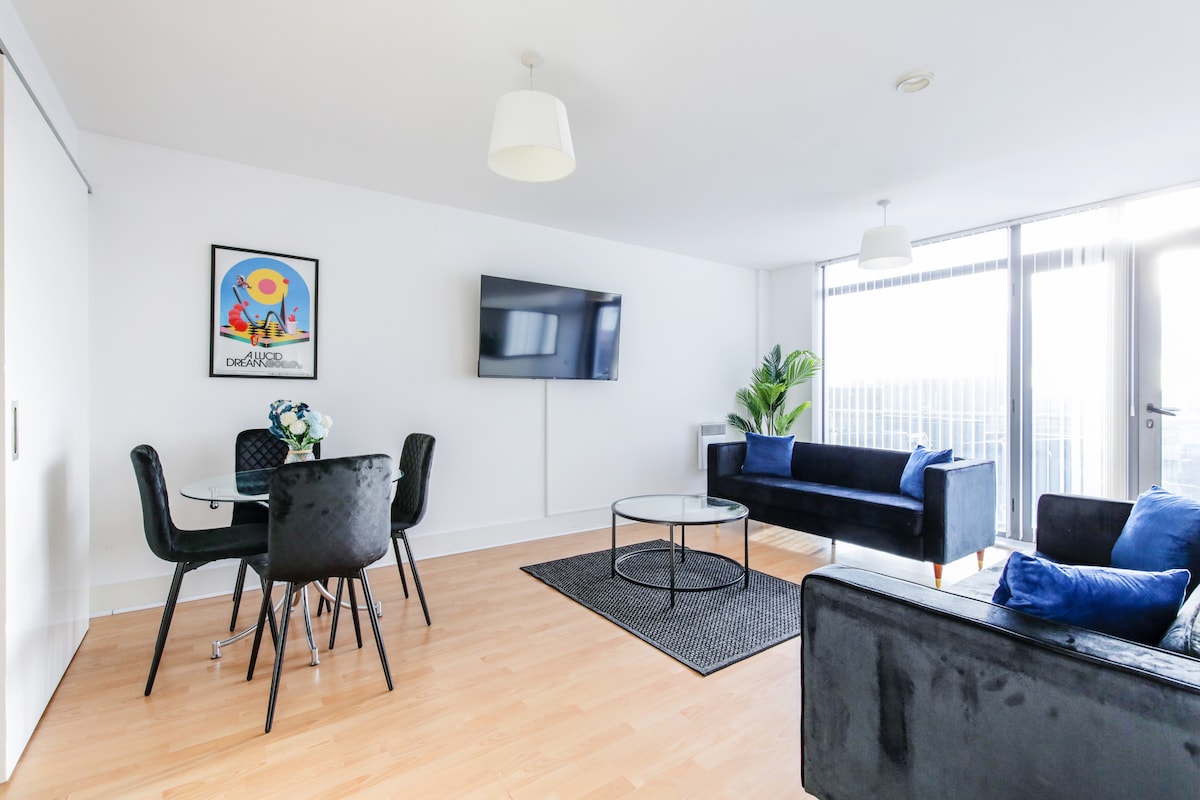 Enjoy a recently renovated luxurious experience at this 2 bed centrally-located apartment in the heart of Liverpool. This spacious but cosy flat is a perfect getaway for a family or friends to explore the heart of Liverpool city. You will be a stones throw away from the hustle and bustle of Liverpool with everything you need on your doorstep. The apartment is set back in a gated secured apartment block just off the main road meaning it has the luxury of being peaceful . Best of both worlds!