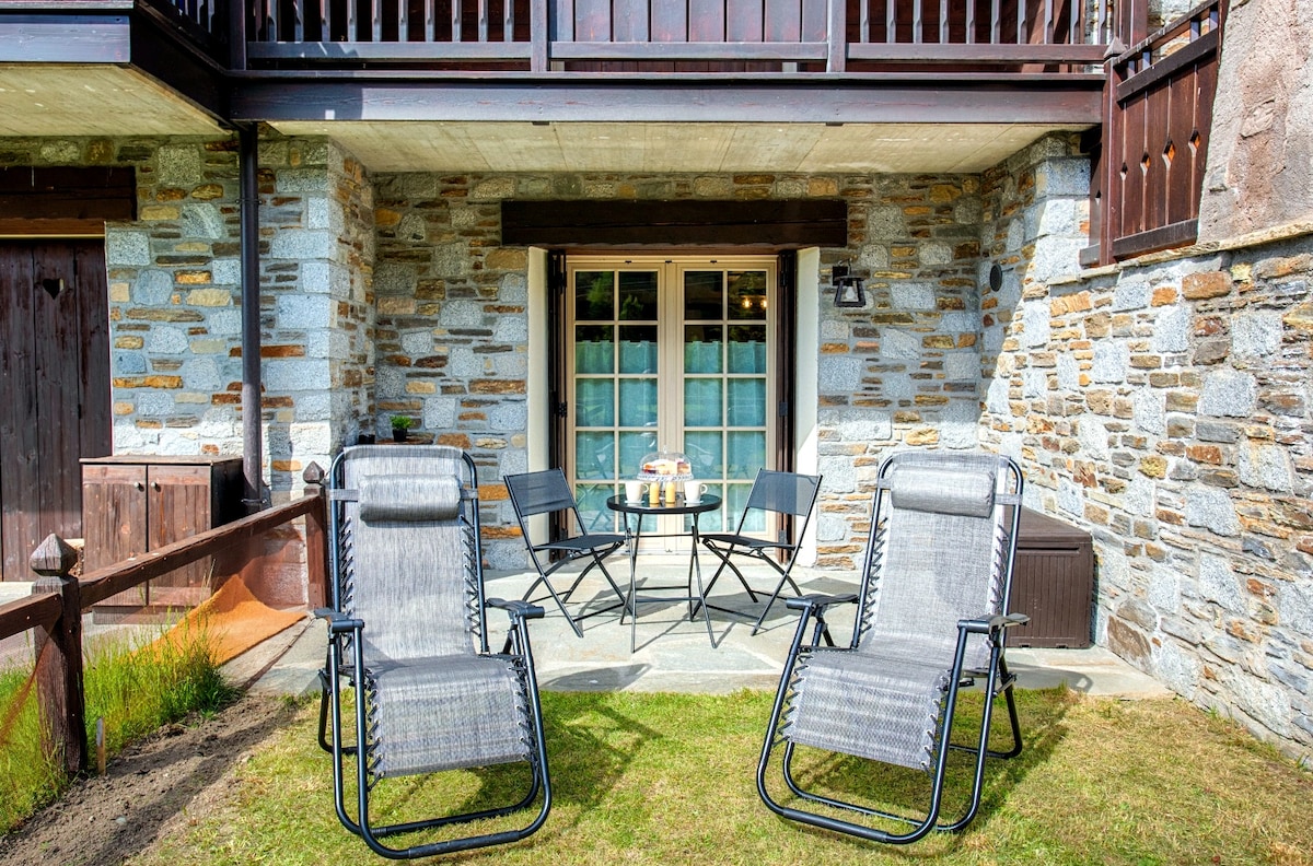 优雅的2卧室公寓,带花园座位和山景