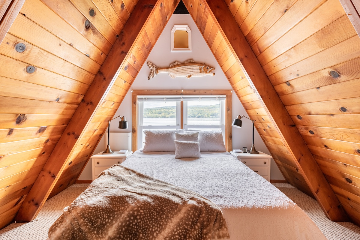 Welcome to "The Honey A-Frame," a cozy, year-round cottage with 55 feet of private lakefront on the beautiful New York State Finger Lake of Honeoye. With ski chalet vibes and stunning water views, it's the perfect setting for a family vacation, a wine-touring trip with friends, or a romantic couples weekend.
