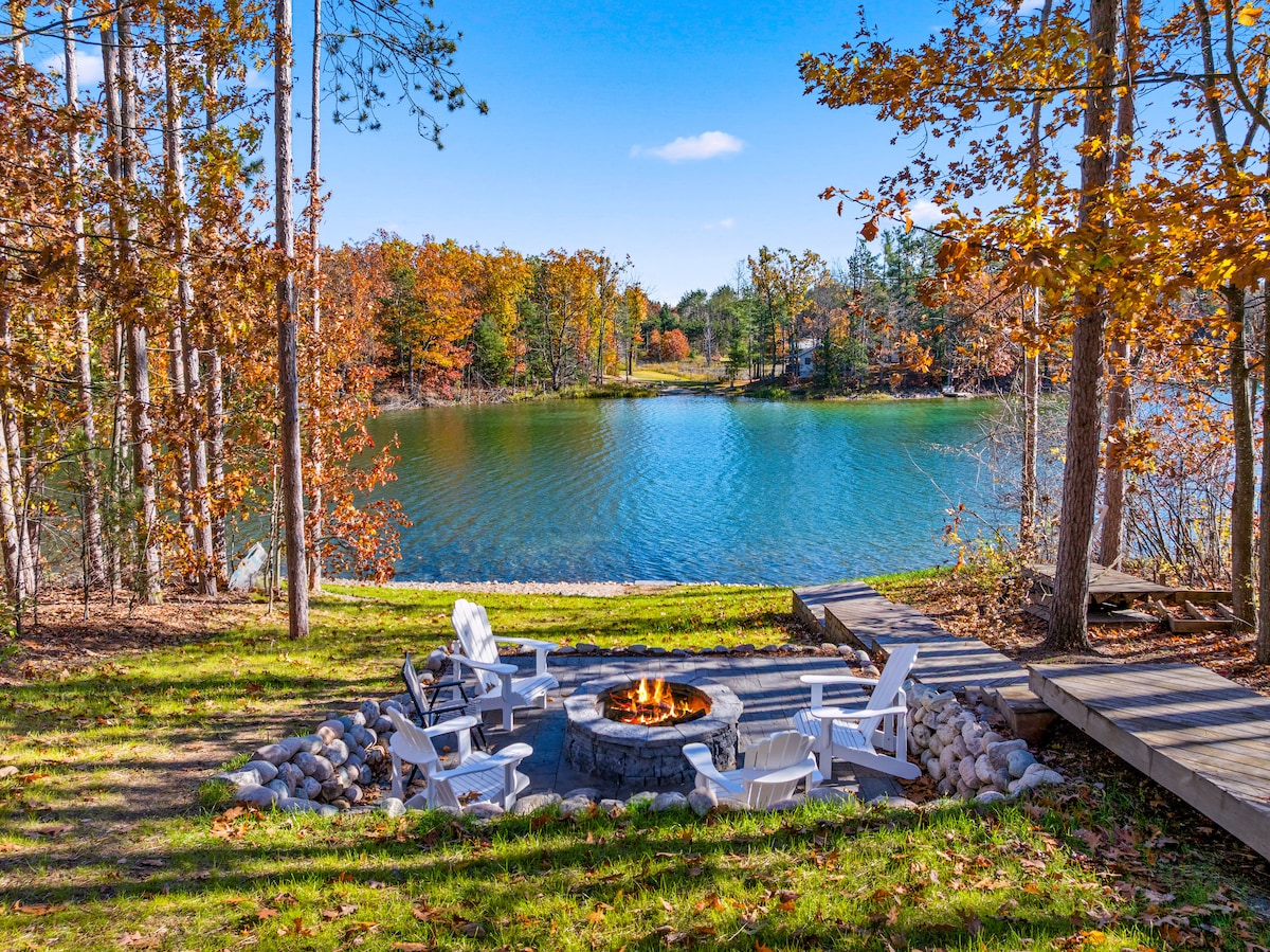 Large family-friendly luxurious cottage sitting right on the shores of private Five Lakes w/ all seasons breathtaking views & clear water. Enjoy swimming, fishing, kayaking, and ice fishing on-site. Minutes from downtown attractions, golf resorts, snowmobiling, snowshoeing, and a short drive to Boyne Mountain Ski Resort & up north attractions. Cozy bedrooms, modern kitchen, dining room, comfortable living room, large deck, fire pit, gas grill, Billiard table & HOT TUB with gorgeous lake viewing.
