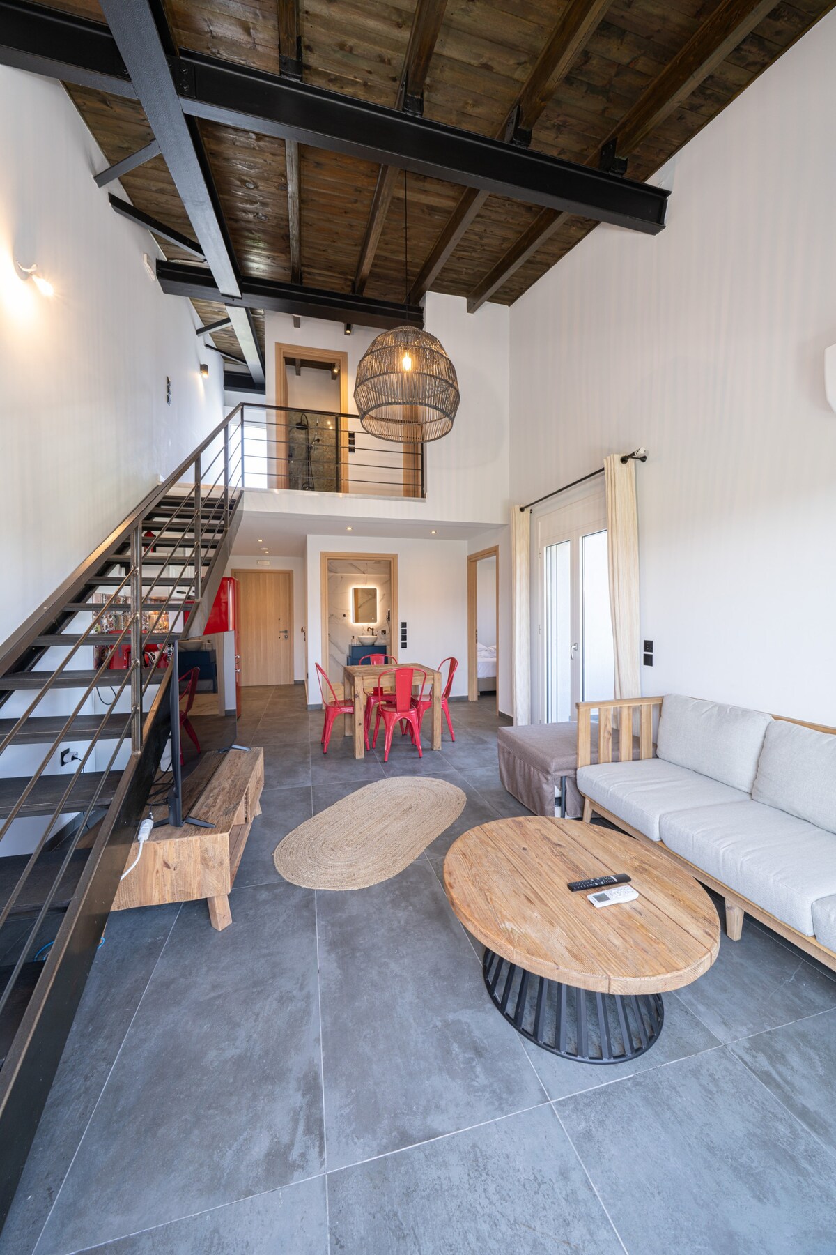 There is easy and direct access to the beach – a mere 150 meters walk to the rocky bay of Limioni and a 3-minute drive to the main beach of the village, Ligia.