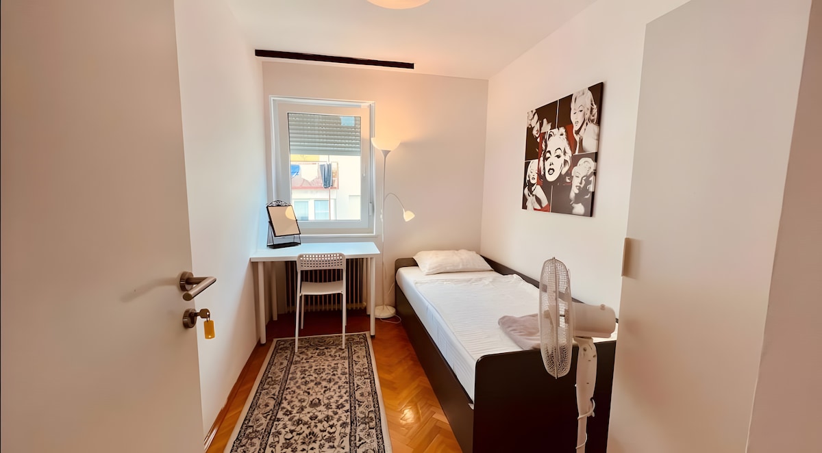 7 - Single Room with Shared Bathroom in Emona Guesthouse. Emona Guesthouse is located in a calm street but at the same time it is very close to the city center, just within 12 min walking distance. We have easy self check in so guests can arrive and leave at any time.