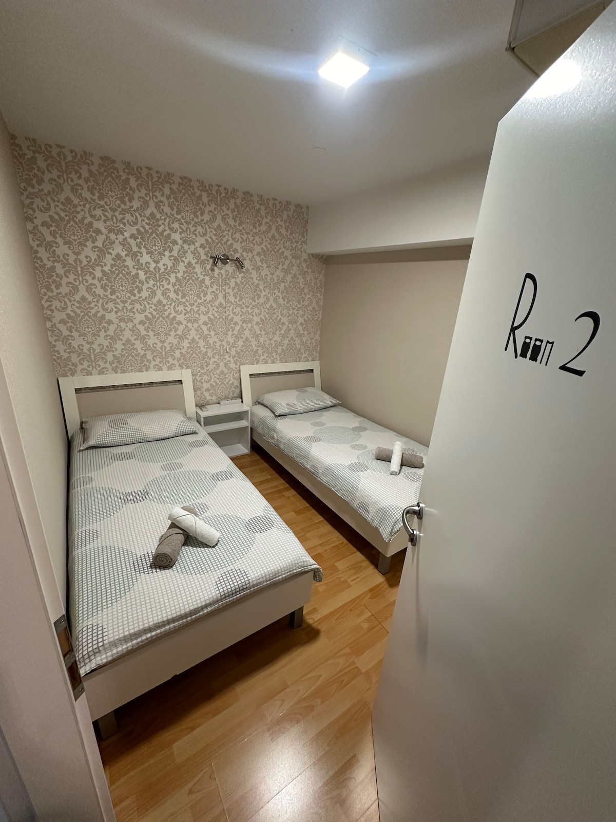 Room 3 is brand new with an en-suite bathroom and can comfortabily host 3 guests (19 sq.m). Functional and cozy, perfectly located only 200m away from the main station, just a couple of minutes from the old town. It is located on the 1st floor, above our caffe, where we have 4 guest rooms in total so you can expect other guests staying at the same time as you. Fresh linens and toiletries are provided and Wi-Fi is available for free. Keyless entry lock provides flexible self check-in/check/out.