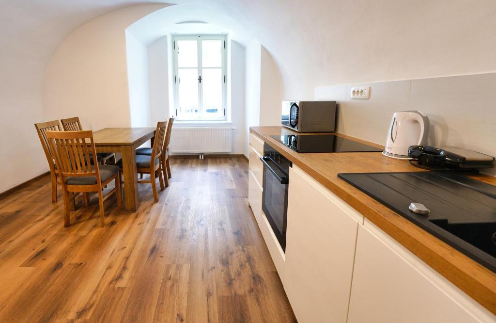 This immaculate and spacious apartment will be your oasis in the heart of the city overlooking the castle Unbeatable location inside the quiet pedestrian zone with walking distance to the Triple & Dragon Bridge and the Central Market. Surrounded by many amazing restaurants, cafes, bbq & bars Comfortable queen (160cm) bed and attached bathroom with a shower and a tub. A smart 40" TV, fully equipped kitchen refrigerator, as well as seating area. Linens, towels, toiletries, washer&dryer provided