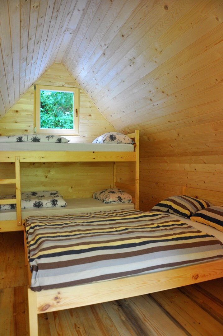 Accommodation Camping&Glamping Grintovec is located, as the name suggests, at the foot of the highest mountain of the Kamnik-Savinja Alps in the Kokra Valley. The quiet location allows you to relax on the terrace to the sounds of the barking of the stream and other local birds. As part of the accommodation we offer discreet glamping cottages with individual beds, which can be combined if desired. The surrounding area also offers many opportunities for activities such as cycling, climbing etc.