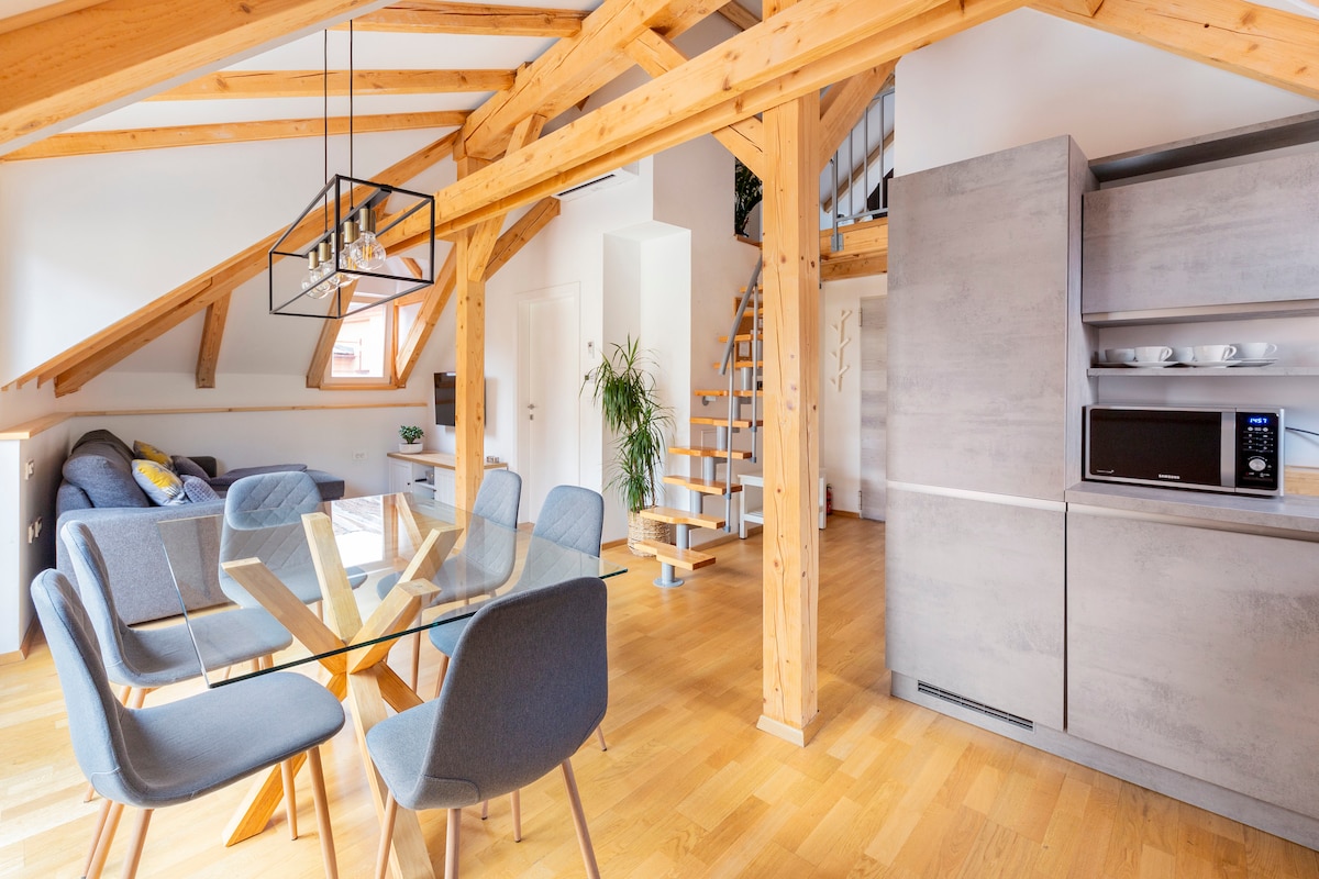 Our penthouse apartment, nestled beneath the iconic Ljubljana Castle, is a harmonious blend of history and modern luxury. This architectural gem is located within a cultural monument that offers an oasis in the city center, a quiet area, with stylish furnishings where history and modernity harmoniously coexist. You're just steps away from major attractions (marketplace, Funicular, Dragon Bridge...main bus&train station). Best location in town, at the crossroads of Ljubljana's cultural tapestry.
