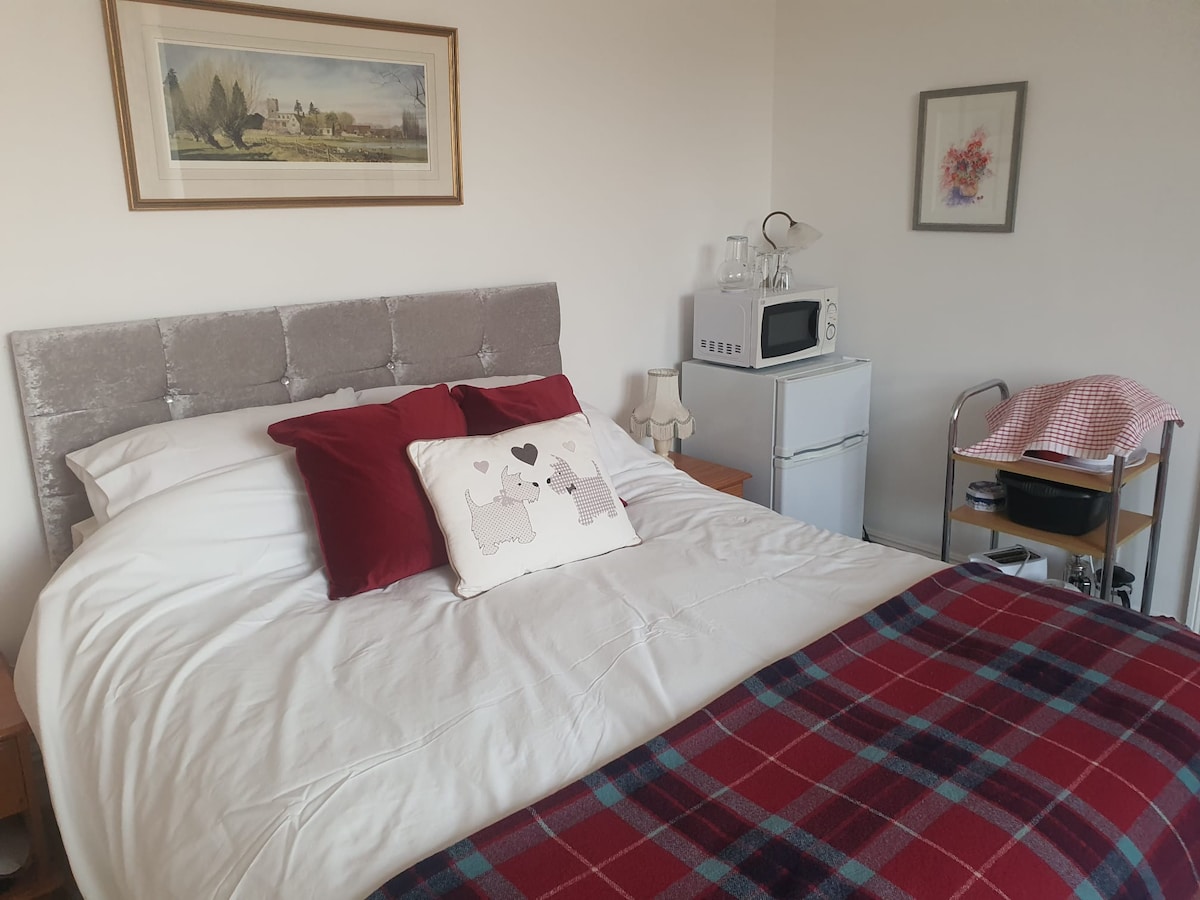Riverside guest suite on the lower level of our 4 storey house in the heart of Llanfairfechan offering a double bedroom, dining / sitting room with en suite private bathroom and courtyard garden, tea/coffee making, flat screen TV, microwave, fridge, iron and home comforts including two seater sofa. There’s two general stores and takeaways a couple of minutes walk, the mainline railway station is a 10 minute stroll. Breakfast is cereal, toast, tea/coffee and a cooked light breakfast.