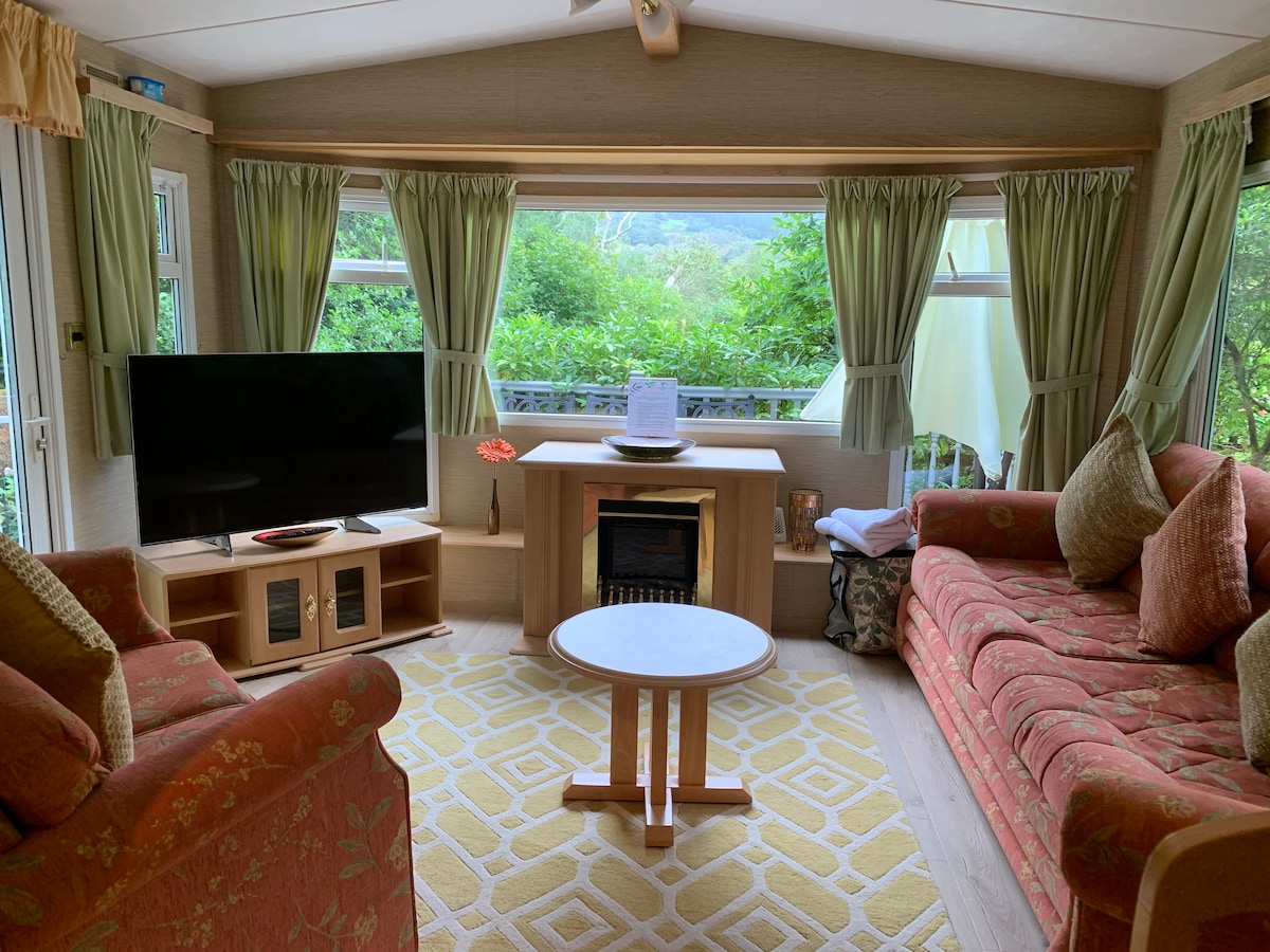 A 6 birth double glazed & central heated static home situated in private grounds. Picturesque garden, river & woodland area with fishing available (subject to licence). Fully equipped kitchen with cooker, microwave, fridge freezer & combi boiler. All linen provided including towels. Also included: iron & ironing board, hairdryer, 39 inch HRD TV with Freeview channels (live channels may not always be available due to location) DVD player & selection of DVDs, board-games & books, WiFi.