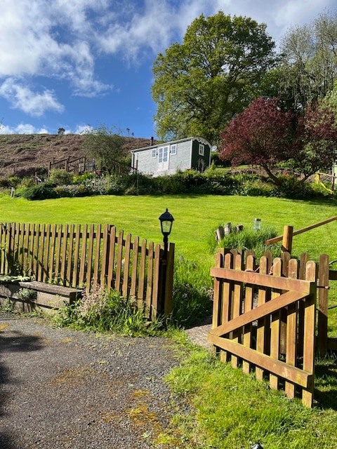 Relax in this calm space, surrounded by nature and a large, peaceful garden. You have your own private en-suite shower room and a comfortable bed suitable for single or double occupants. There's also a small unit including sink and drainer, mini fridge, microwave, kettle and toaster for your private use in the space. In warmer weather, enjoy sitting outdoors and exploring our local area, including the historic towns of Bishop's Castle & Montgomery - you are right on the border here in Snead ☀
