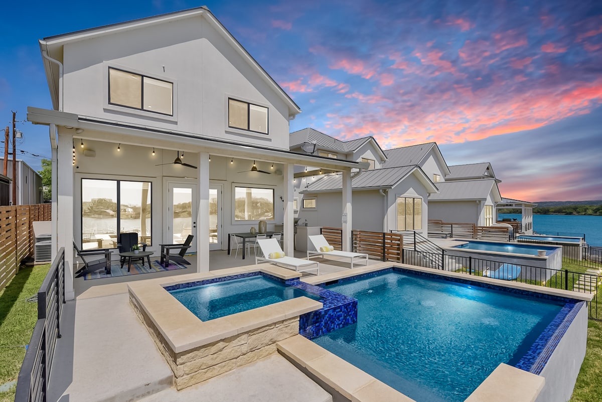 A stylish waterfront retreat with a pool, hot tub, and 2-story dock! Walk to Boat Town Burger Bar. Less than 2 miles from other restaurants. Whether you're planning a family getaway, reunion with friends, or a team building experience, you won't want to check out of the Lake LBJ Farmhouse after your stay - as seen in our reviews from happy guests! Professionally managed by GuestSpaces. Book a 4-Night Stay at this property and get 50% OFF your 4th night! Click “Show more” for full details.