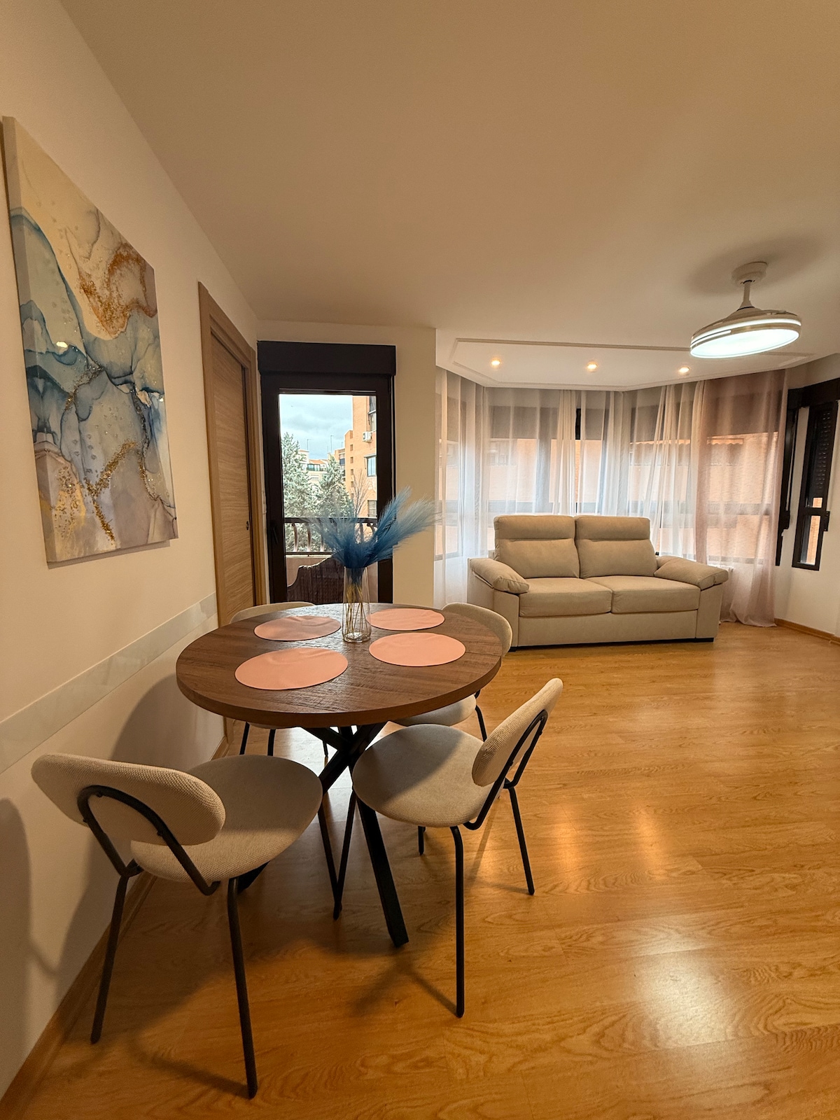 Relax and disconnect in this quiet, elegant and unique apartment in Albacete. The location is ideal, 5 minutes walk from the center but on a quiet street. Abelardo Sanchez Park is next door and there are two private car parks 1 minute away and free parking areas on the street. The apartment is completely renovated with high comfort and great equipment such as a 55' TV and hydromassage shower among others. This place will give you everything you need to disconnect, enjoy and relax :)