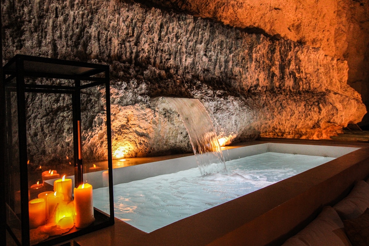 KAVERNO es una cueva con siglos de antigüedad, que fue rehabilitada íntegramente en 2022. Consta de 80 m2, divididos en tres plantas, una primera planta, con un amplio salón vanguardista donde se fusiona con una cocina de diseño abierta, completamente equipada y un espectacular jacuzzi privado climatizado. En la segunda planta nos encontramos su dormitorio con una cama KING SIZE, y vistas a la Hoz del río Júcar.En la planta ático, se situa una terraza privada, donde se ubica una piscina privada.
