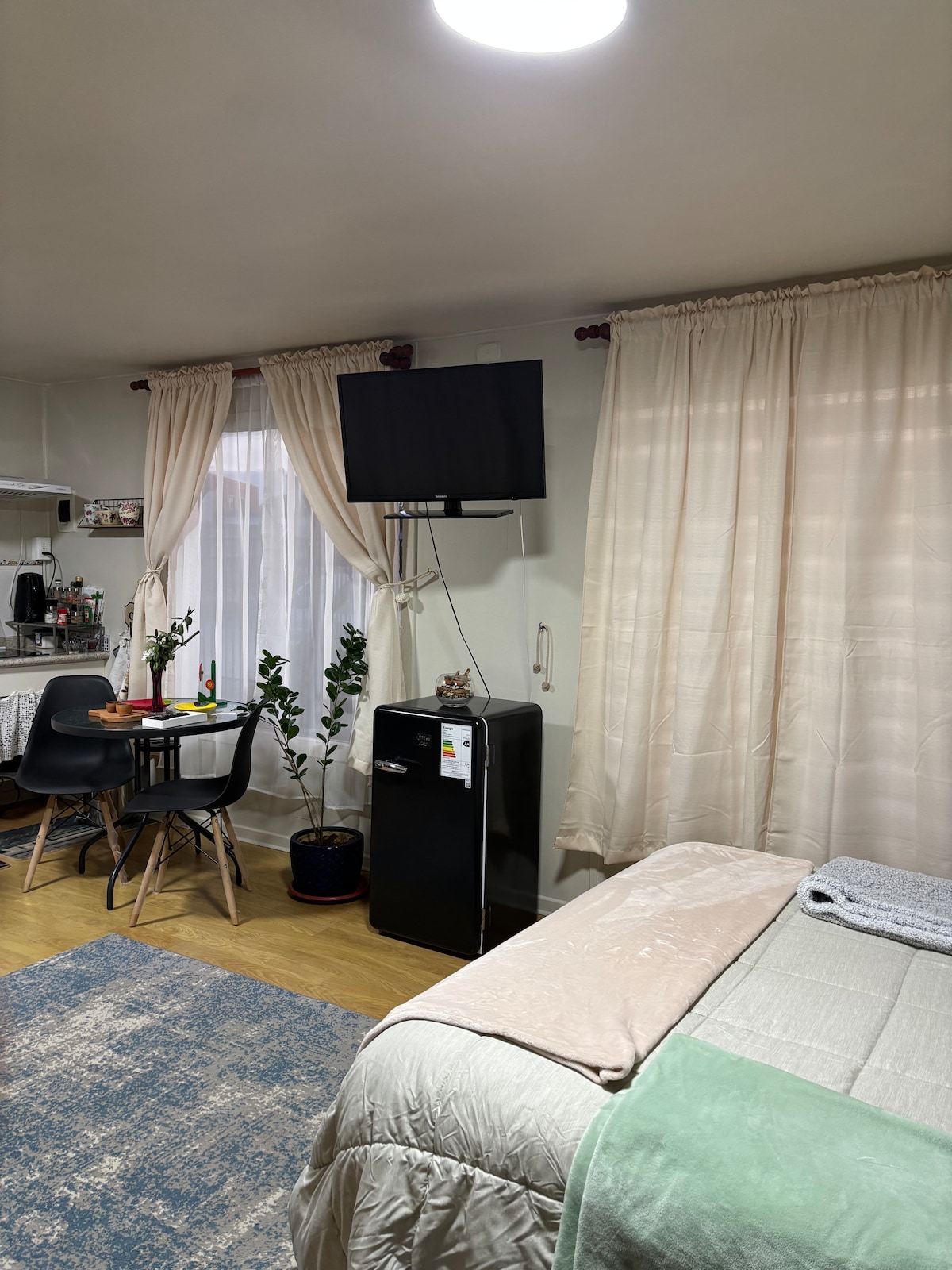 Departamento 1D/1B, ubicación excelente en el centro de Puerto Varas, ideal para parejas, cocina full equipada, cafetera, microondas, Smart TV, Netflix, calefacción y calienta cama. Además, incluye estacionamiento, conserjería 24 hrs, gimnasio y asesoría durante su estadía si es necesario. A pasos de supermercados, restaurantes y Lago Llanquihue.