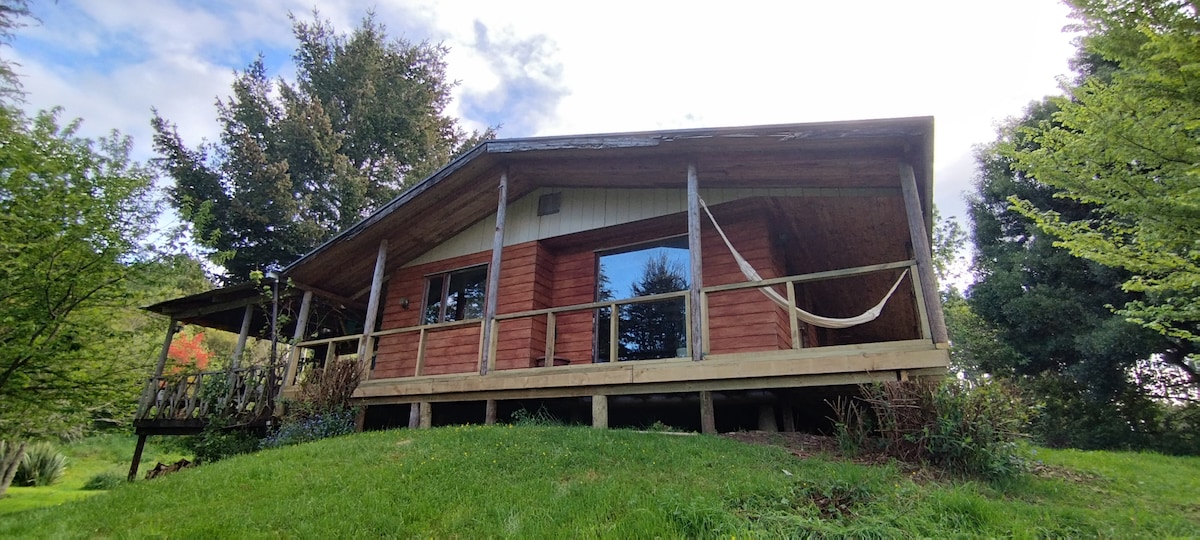Cabaña en medio del bosque, especial para quienes quieran desconectarse y disfrutar de la naturaleza. La mayor parte del día puede oírse el canto de los pájaros y recorrer los alrededores avistando una multitud de especies distintas de flora y fauna. En el bosque como en la playa, el huésped puede adentrarse y pasar horas explorando el paisaje, teniendo de fondo a los volcanes Calbuco y Osorno.