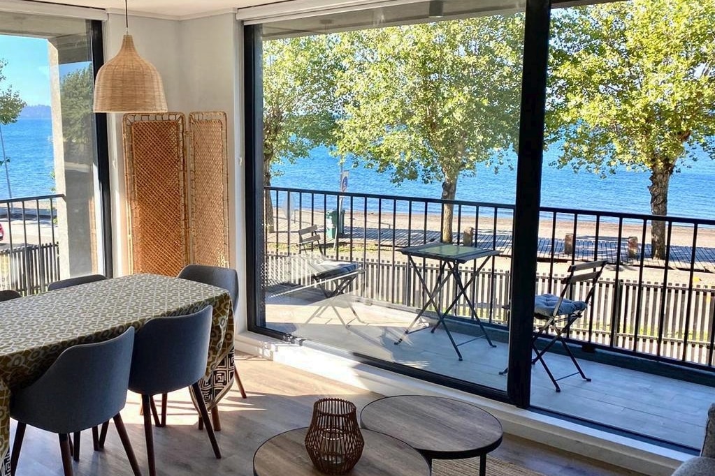 Nuestro Departamento RUKA-LAFKEN está ubicado en Frutillar Bajo. Amoblado y equipado como tu Hogar. Estarás cerca de la playa y a tan solo 4 cuadras del Teatro del Lago y con una vista encantadora al Lago Llanquihue (desde tu terraza). Dispondrás de 2 dormitorios (1 en suite), Living-Comedor, Cocina Americana, 2 Baños, WIFI 5G, Smart Tv-Cable & NetFlix. Un estacionamiento para vehículo. Seguridad en recinto con cámaras de Televigilancia 24/7.