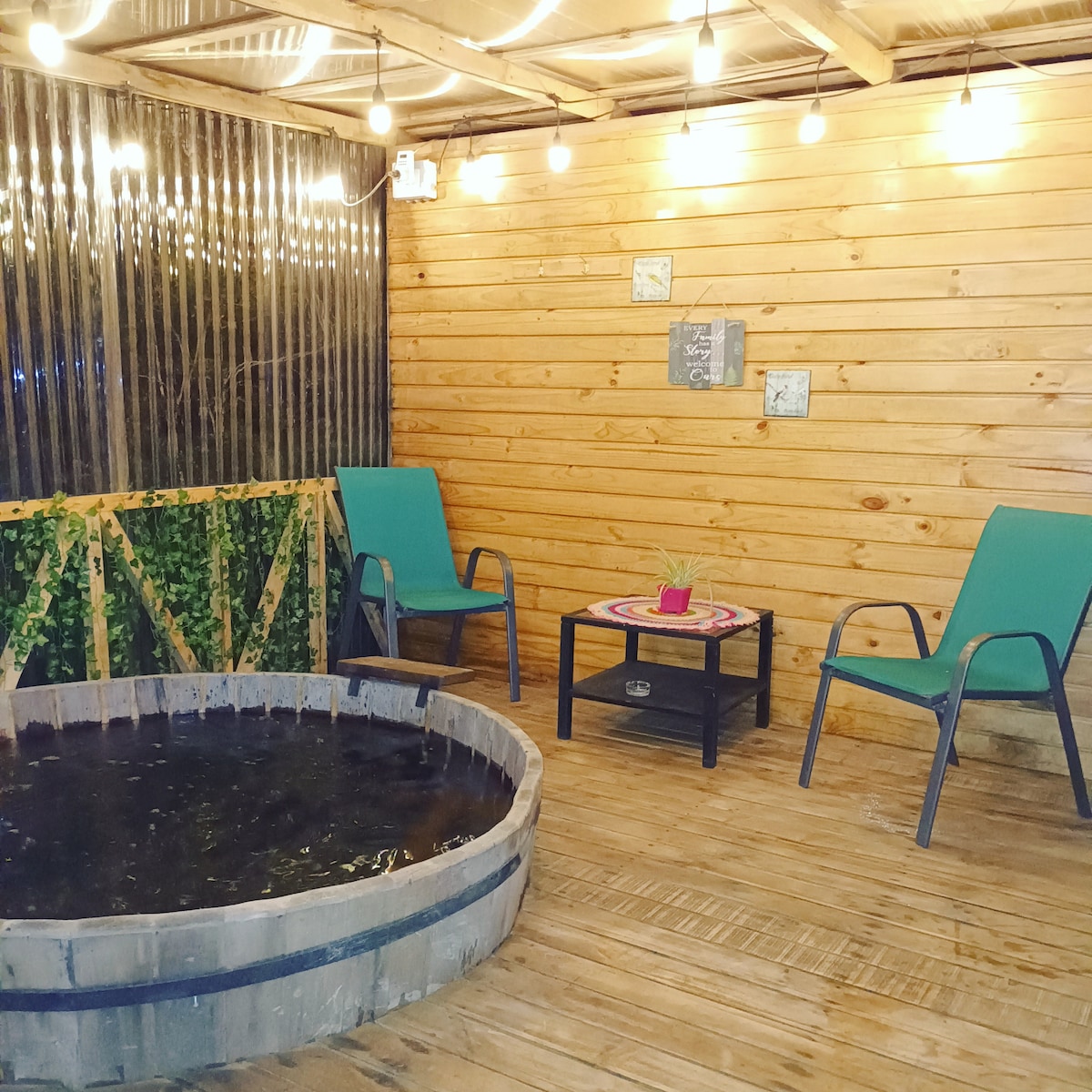 Valor de Airbnb es válido para 2 personas base. Personas extra a las 2 de base se cobra $10.000 por c/u por noche (se paga al llegar). Máximo 4 personas en total; 1 cama de 2 plazas y 2 de 1 plaza. Por $50.000 extra (se paga al llegar) se incluye: 1. Tinaja techada con hidromasaje (uso ilimitado) 2. Bebestible (vino blanco, jugo, agua, o bebida) 3. Tabla de picoteo Dejamos la tinaja caliente, lista para el uso, a la hora en que ustedes deseen. Se deja leña extra por si quisieran utilizar.