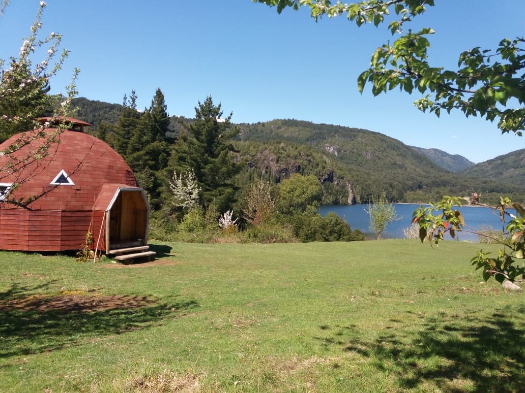in Chile,fern von Lärm finden Sie unser Kuppelhaus umgeben von Wald und Wiesen inmitten einer ruhigen Oase mit Zugang zu einem privat See , ( warmer Badesee) mit Steg. Ein Kajak steht Ihnen zur Verfügung und ein überdachter Grillplatz mit Kamin wo Sie die Abende am Wasser verbringen können. Zur Austattung: Doppelbett, 2 Einzelbetten, Bad/Dusche, Gasherd und Kühlschrank. Am Puelo Fluss etwas 1/2 Std. Fussmarsch entfernt können Sie sich auf Fischfang begeben oder entlang spazieren.