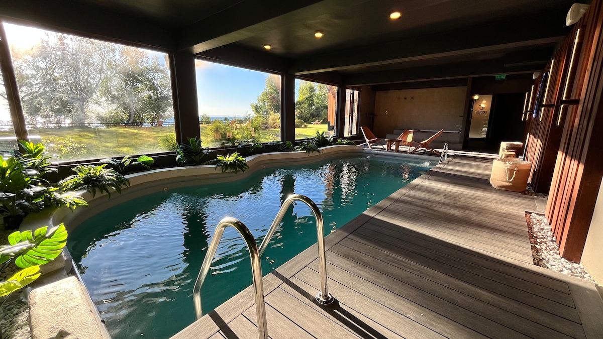 ¡Escápate a esta suite de lujo diseñada para el descanso total! La habitación cautiva con sus impresionantes ventanales de piso a techo que ofrecen vistas panorámicas inigualables a la naturaleza y el mar. Lo más especial es su tina independiente junto a la ventana, perfecta para relajarse mirando el paisaje. Disfruta de la calidez de la chimenea moderna bajo hermosos techos de madera con vigas a la vista. Incluye zona de estar, frigobar y un baño elegante con doble lavabo y ducha moderna.