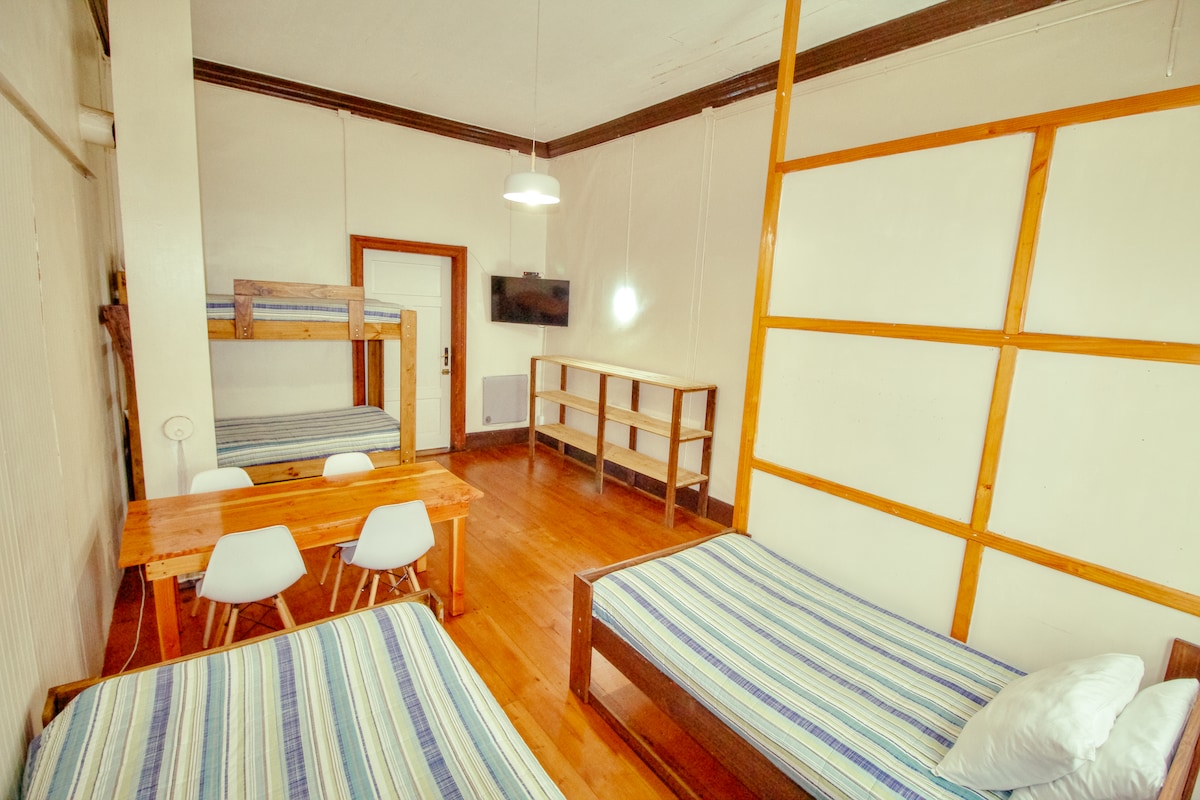 Habitacion familiar triple en hostal ubicado en llanquihue, en un tranquilo barrio residencial, a unos 50 metros del lago llanquihue y su costanera. A 12 min caminando de la estación de trenes