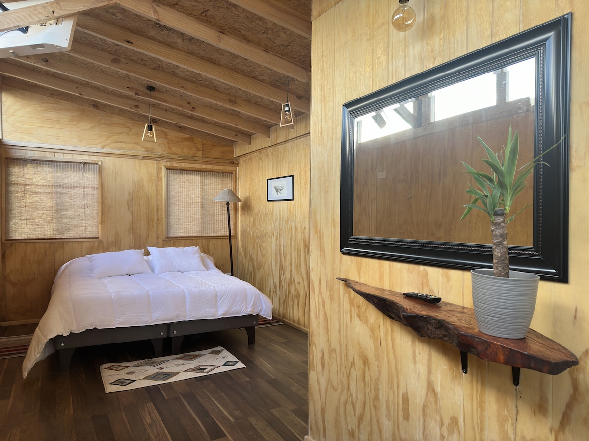 Hermoso departamento interior, construido con materiales nobles de la zona, tejuelas, maderas recicladas y de roble. Ventanales por todo el lado que da hacia una vista privilegiada del Lago Llanquihue y volcanes. Deck propio de madera con zona de descanso para disfrutar de un entorno tranquilo y las tardes sureñas. Spanish /English LGBTQ+ friendly